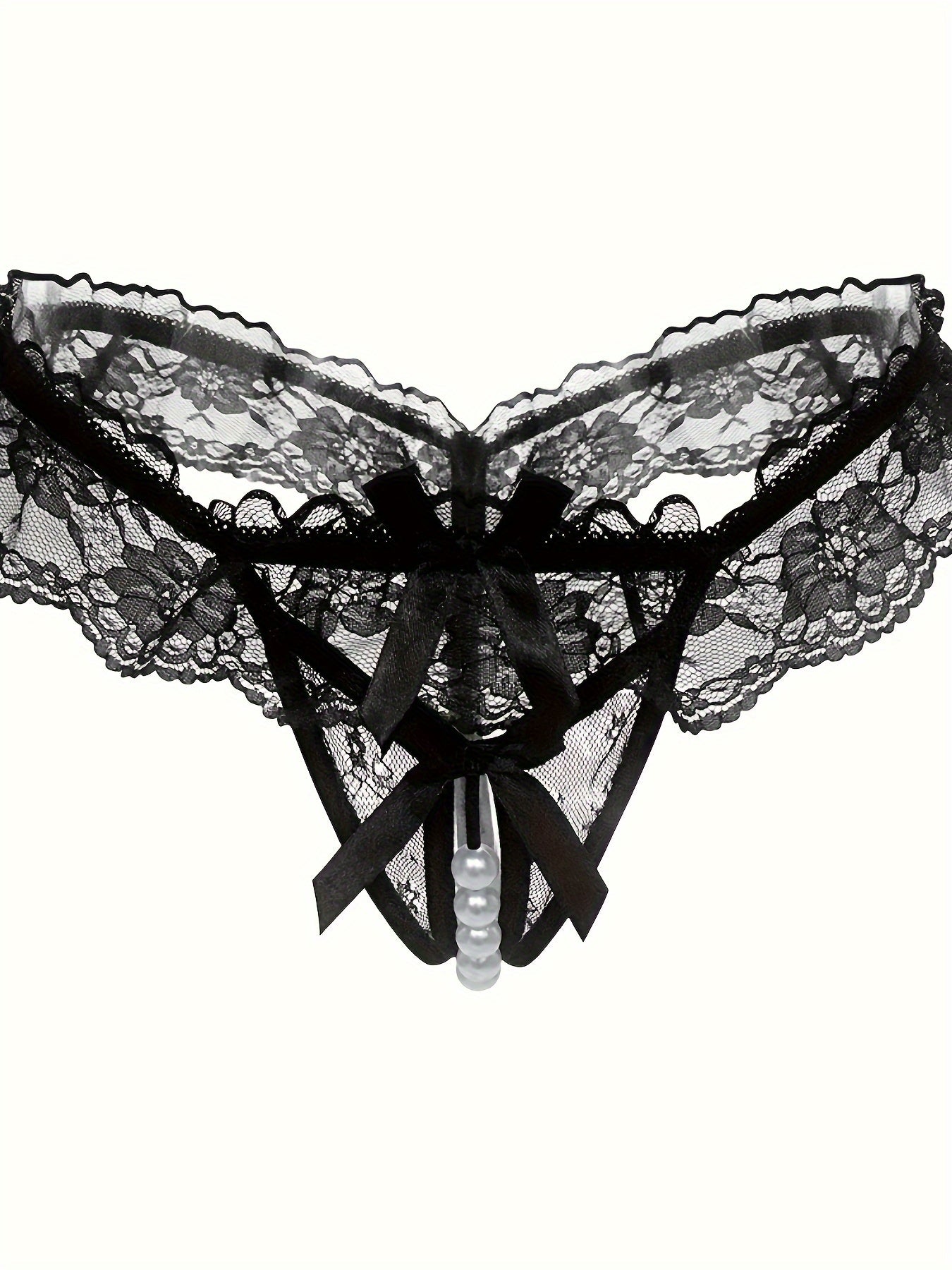 Women's Transparent Lace Crotchless Thong with Pearl Massage Details