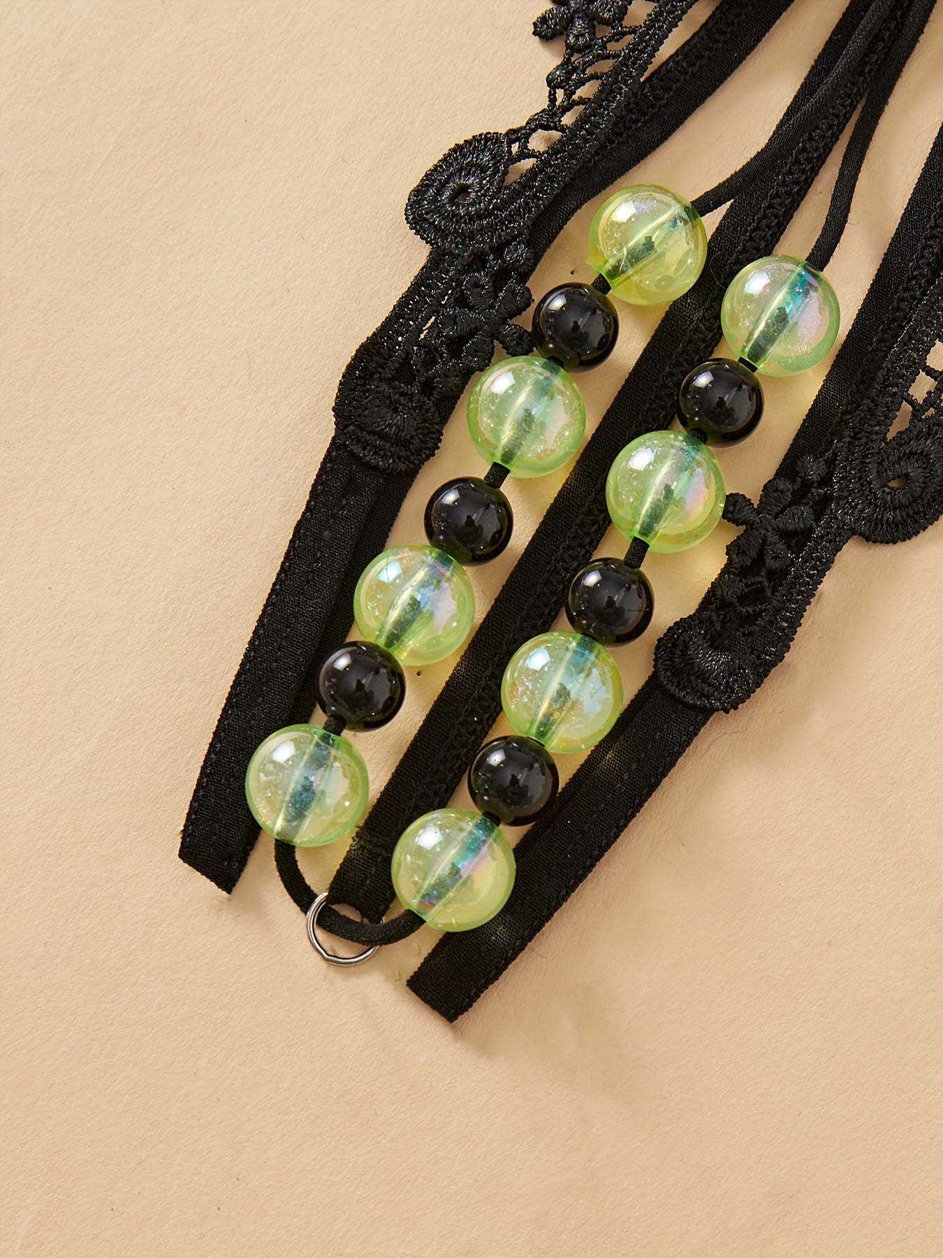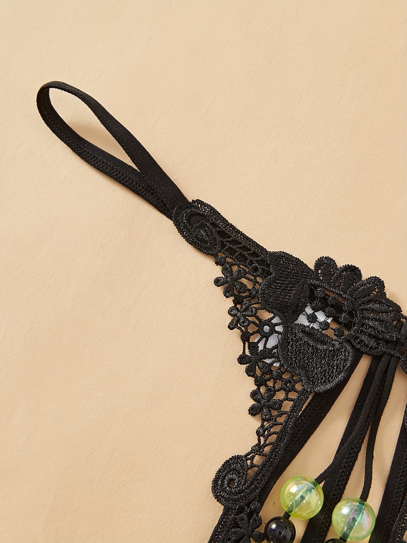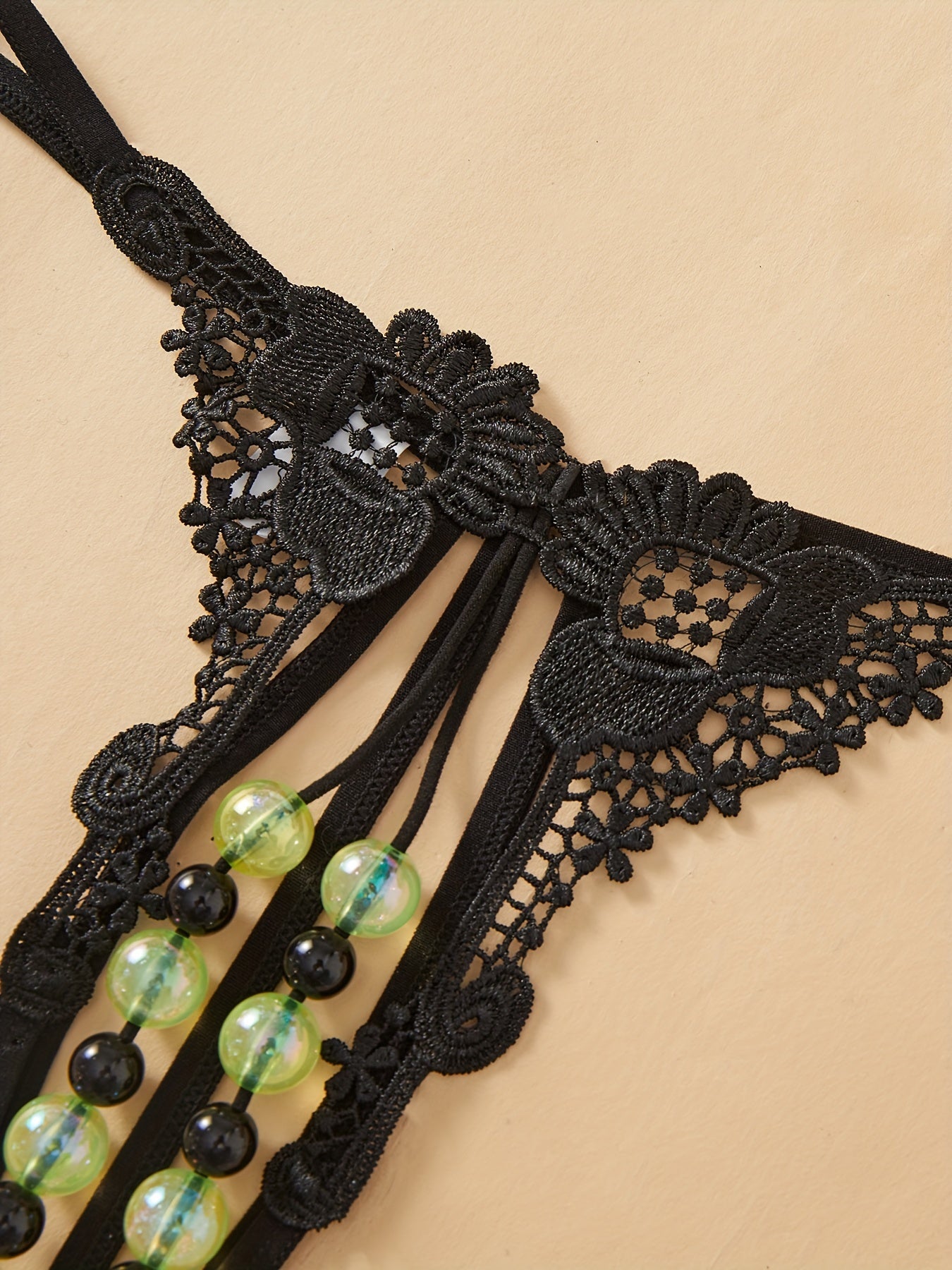 Women’s Lace Double Row Beads Open Crotch Thongs Low Waist Lingerie