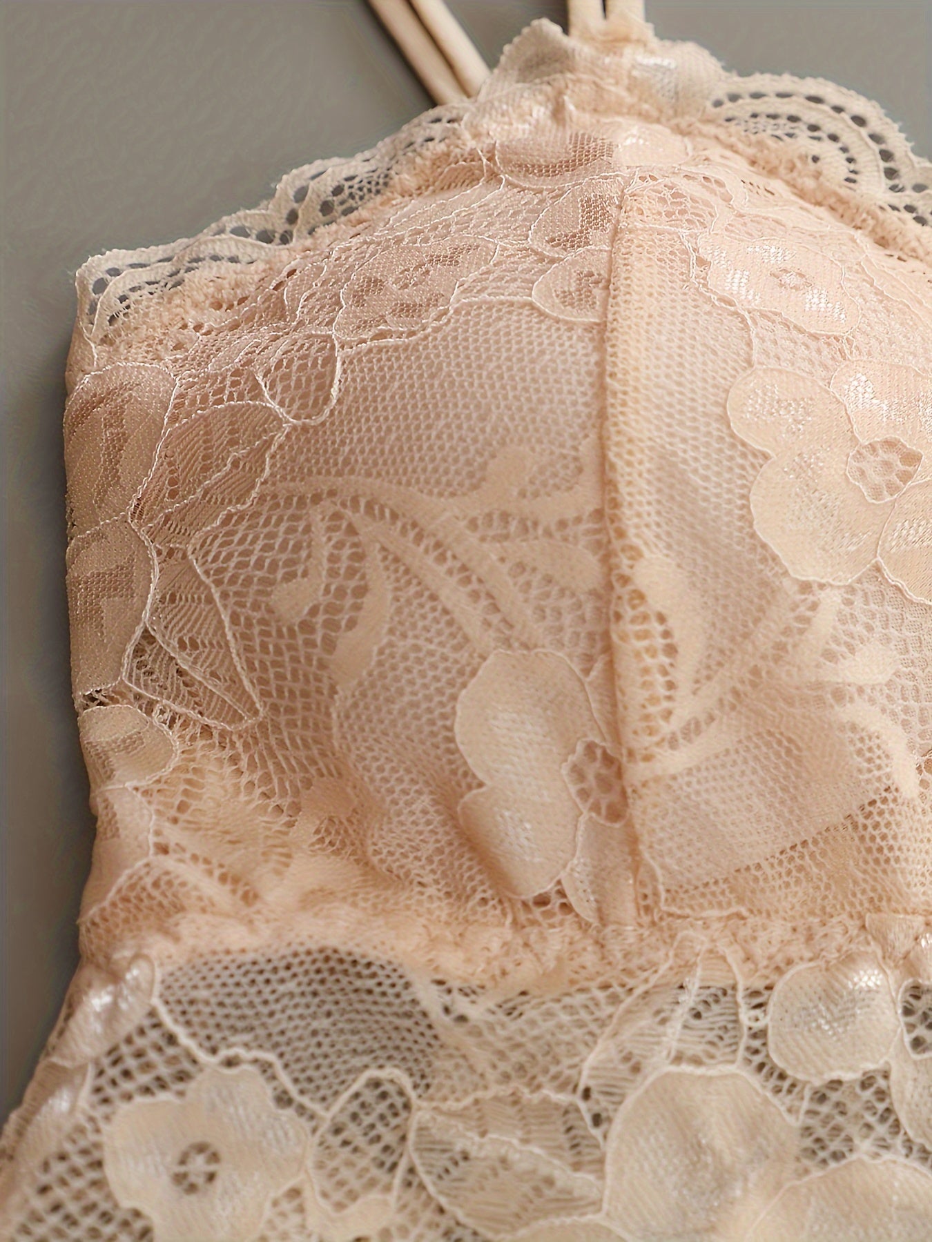 Women's Wireless Lace Bra with Double Shoulder Straps and Soft Padded Navel Top