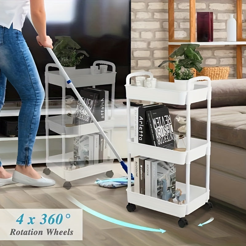 3-Tier Rolling Plastic Storage Cart for Kitchen, Office, Bathroom Organization