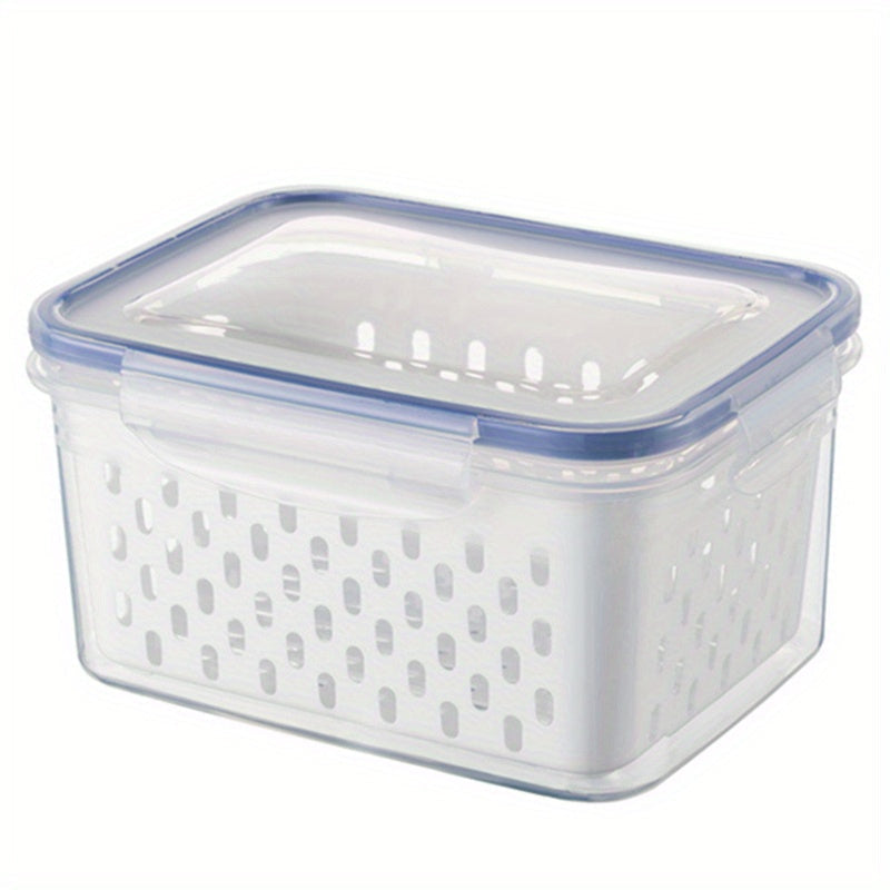 Plastic Kitchen Storage Organizer with Double Layer Draining Basket and Lid for Fruits Vegetables Meat