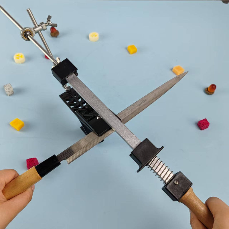 Kitchen sharpening tool with corner-mounted sharpener and professional-grade stone