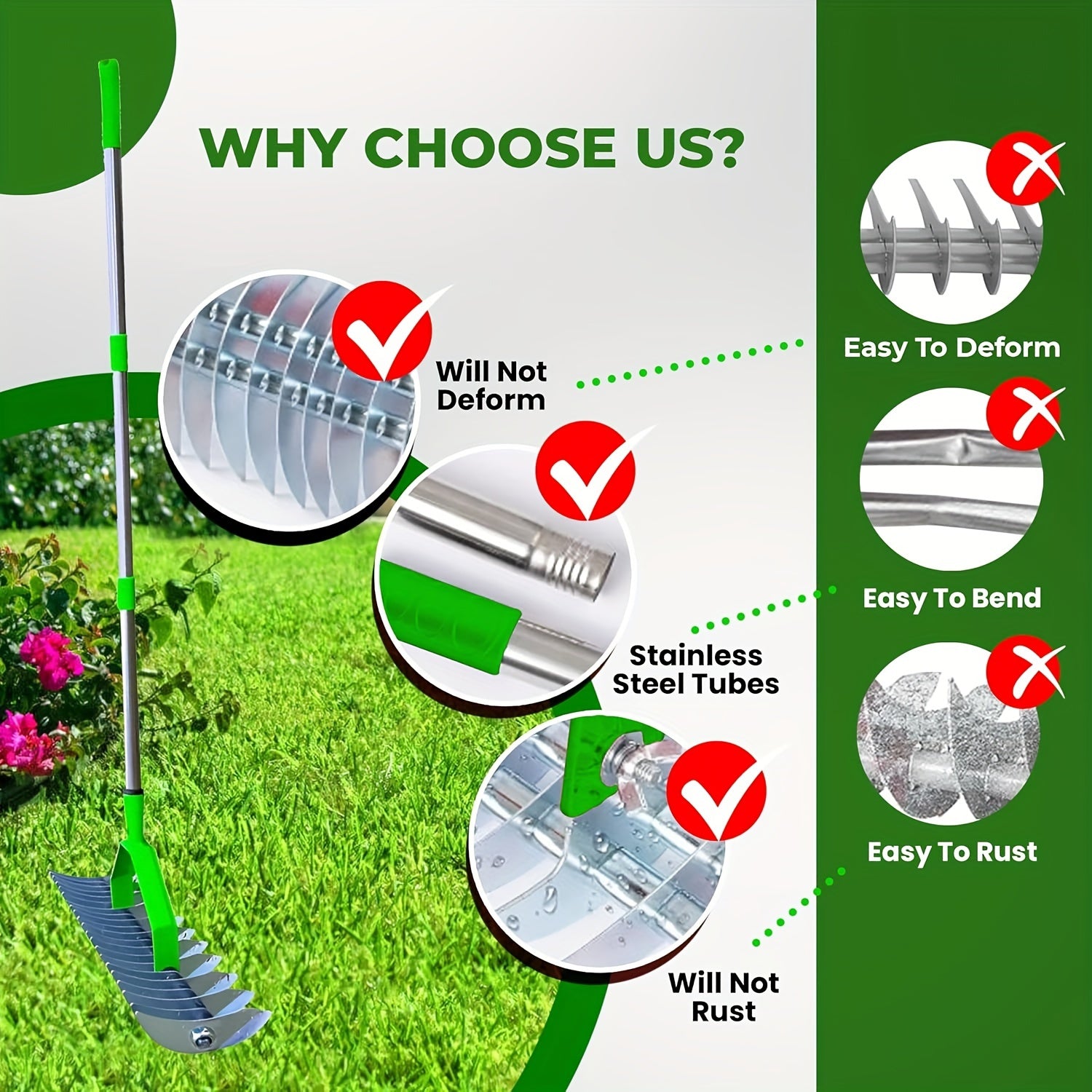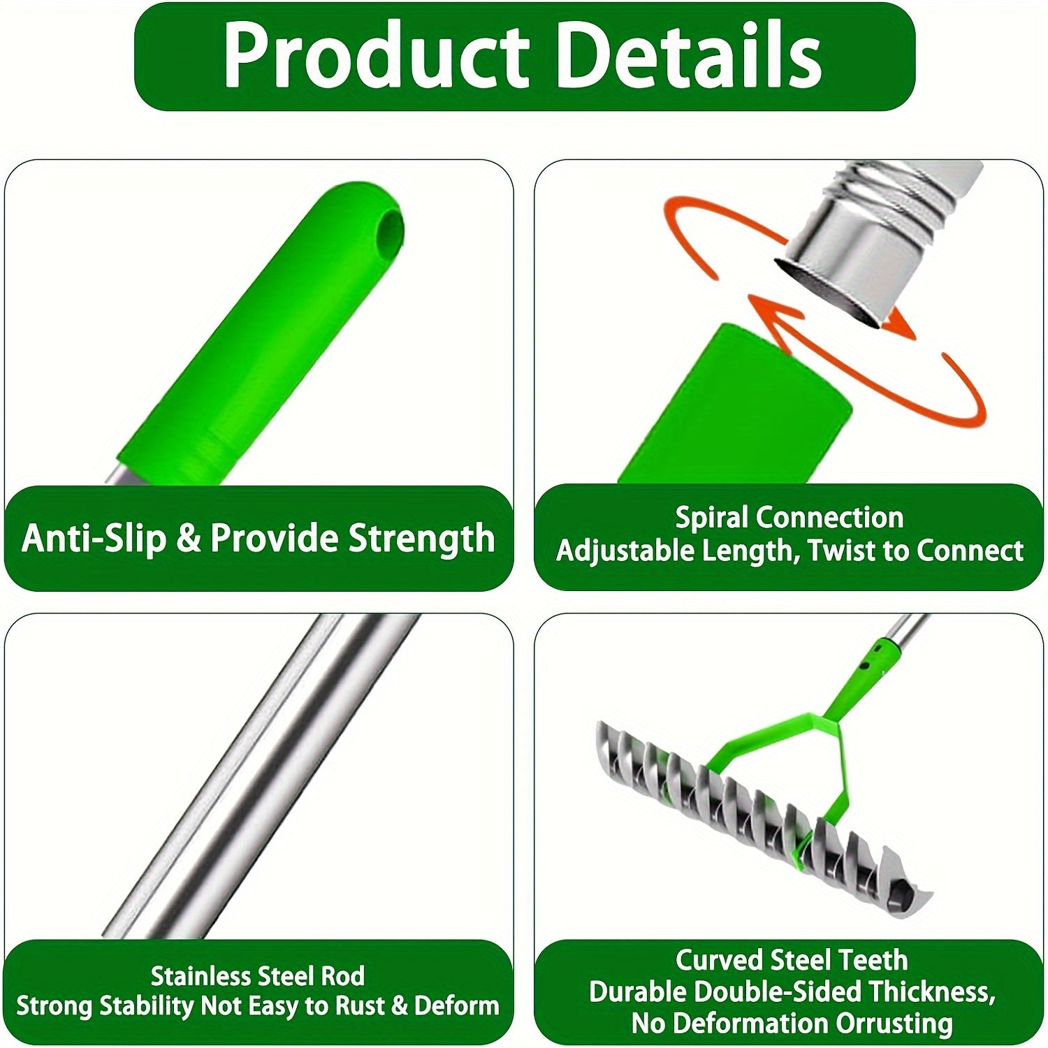 Metal Thatching Rake 12.8 Inch with Anti-Slip Handle for Garden and Yard Maintenance