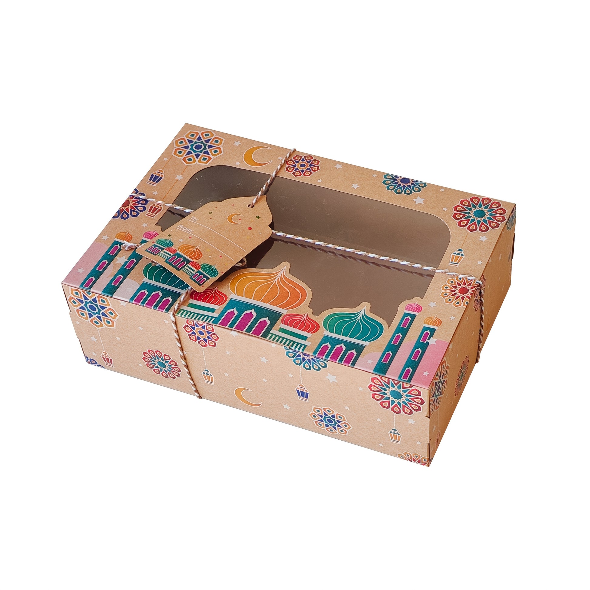 Eid Kraft Paper Gift Boxes with Islamic Designs and View Window for Ramadan Candy Packaging Set of 24