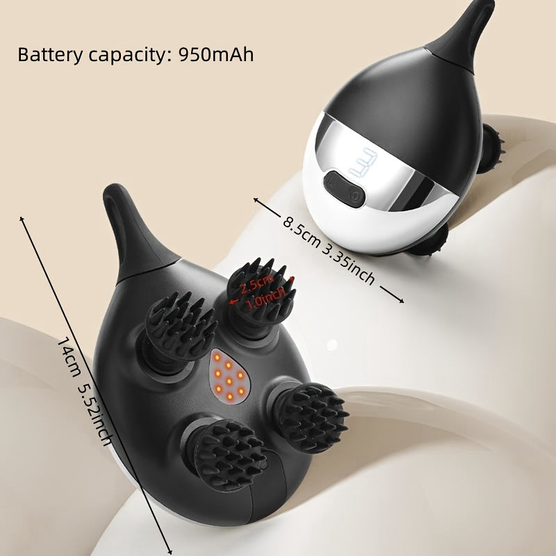 Wireless Electric Head and Shoulder Massager with 8 Detachable Heads and 4 Modes for Full Body Relief