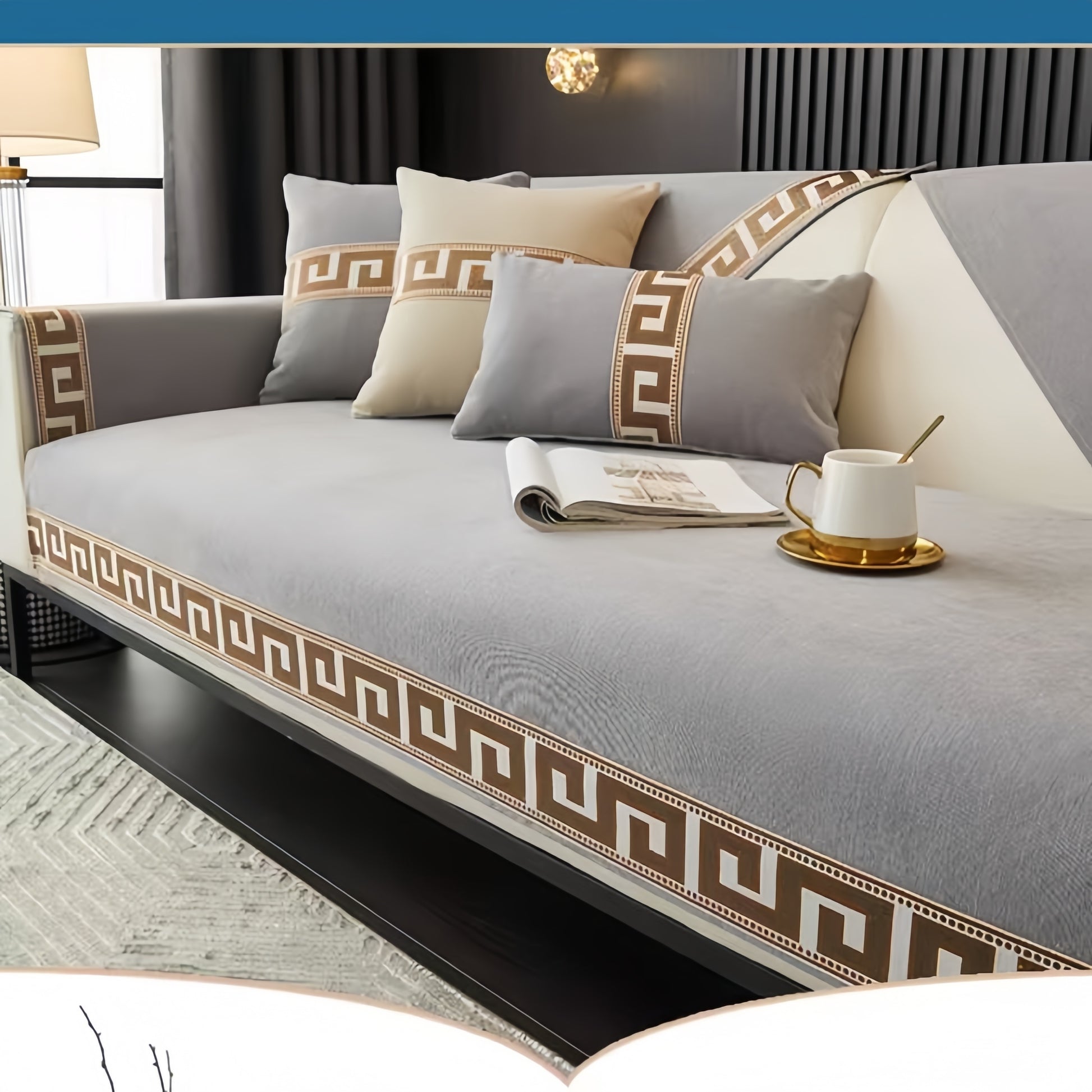 Bohemian Chenille Sofa Cover All Season Non-Slip Pet-Friendly Modern Geometric Fits 1-4 Seaters