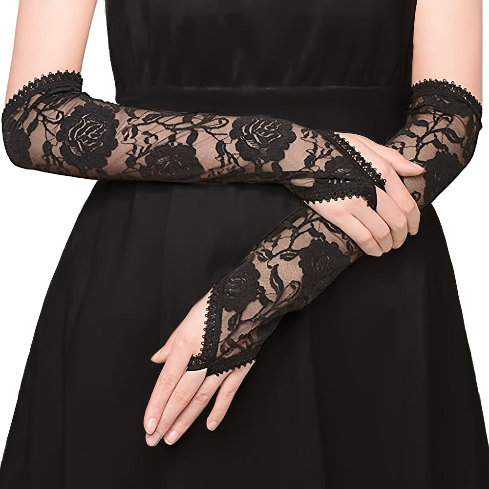 Women's Lace Fingerless Gloves Elbow Length for Weddings and Opera