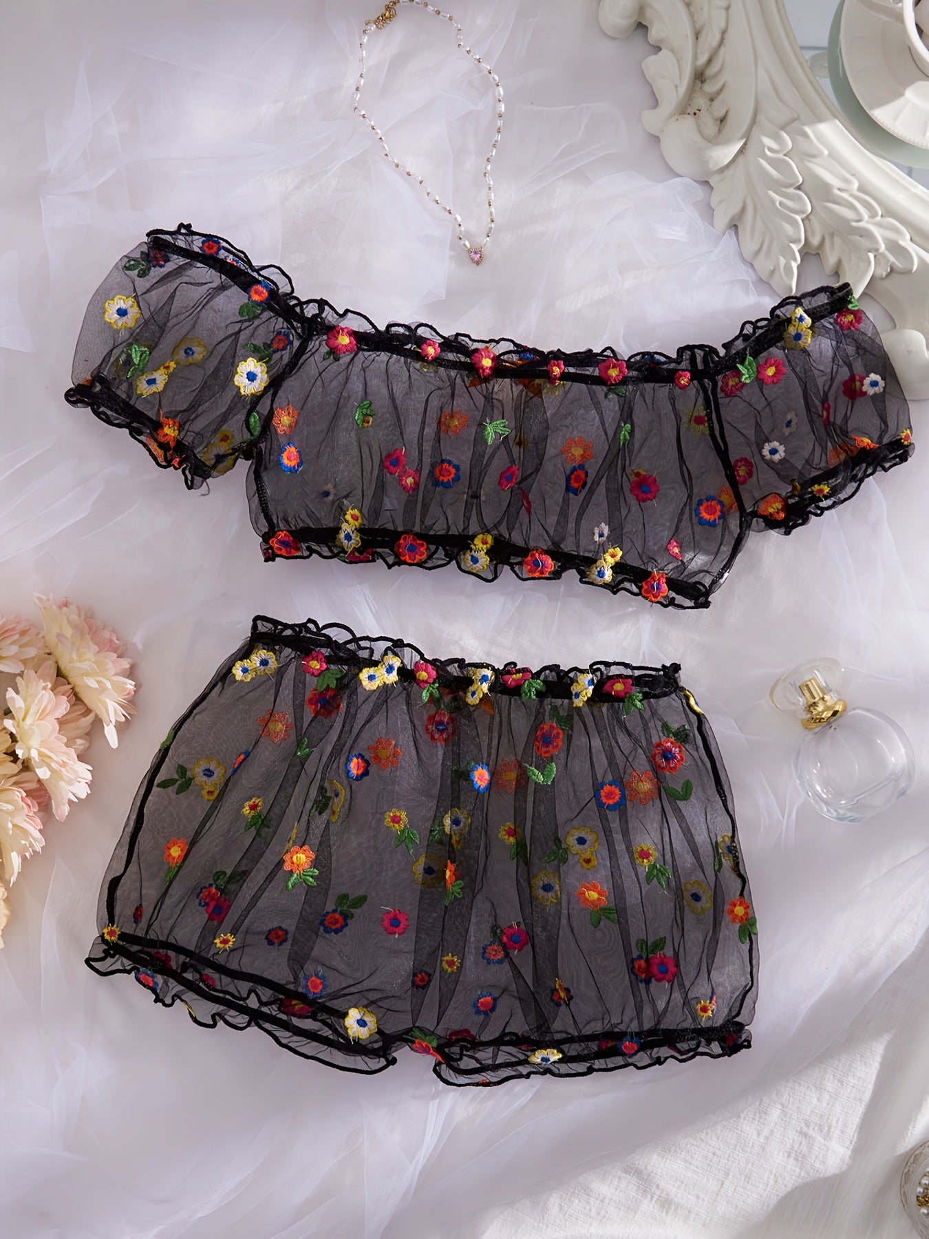 Women's Embroidered Flower Pattern Lingerie Set Erotic Fashion Charm Design