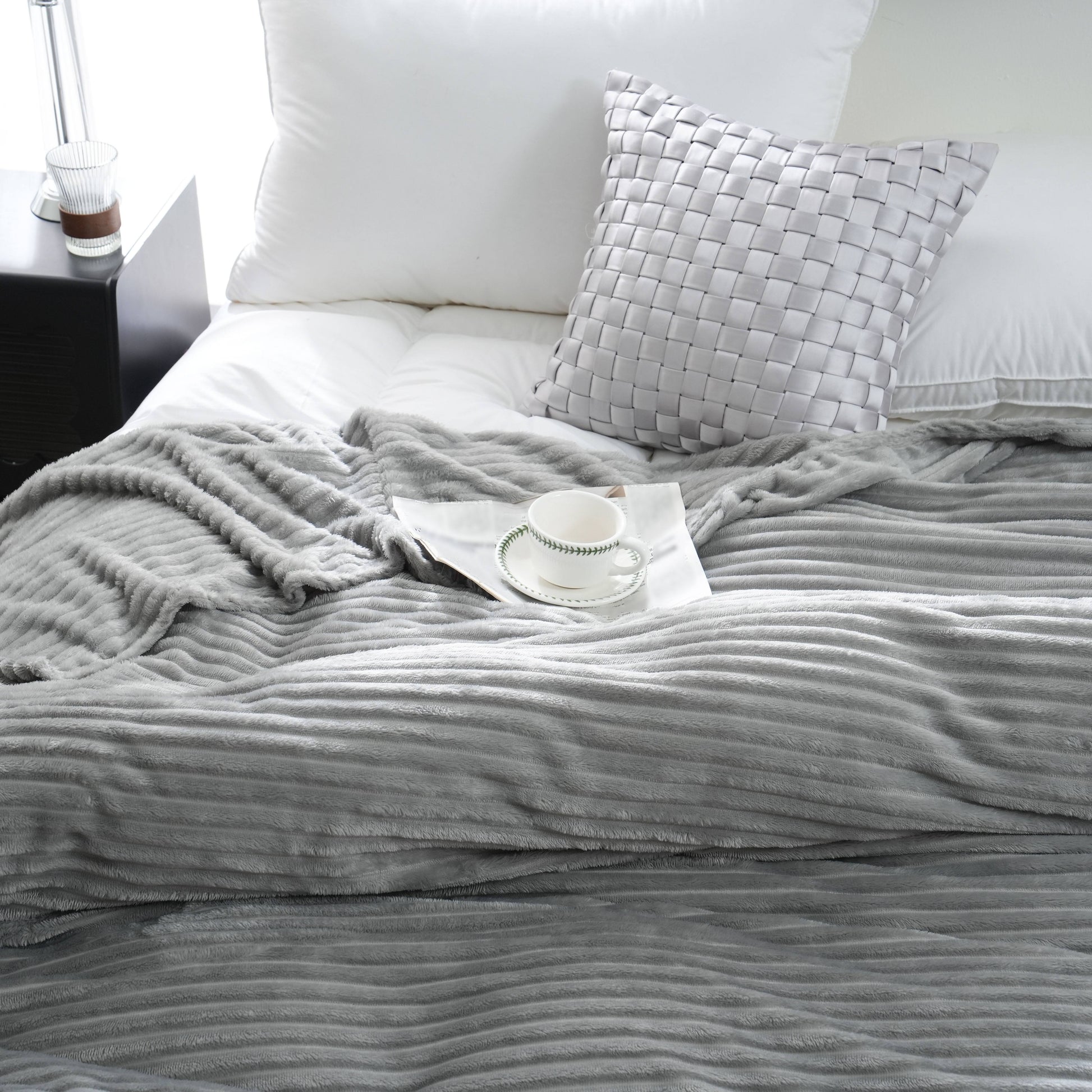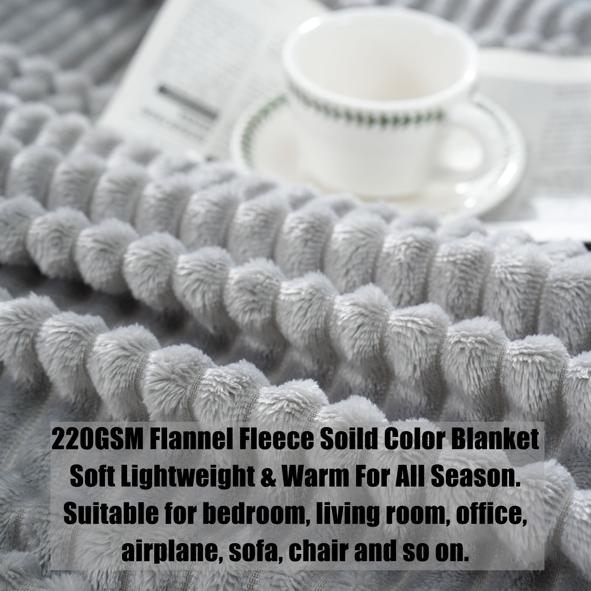 Flannel Throw Blanket 220GSM Ribbed Soft Warm All-Season Bed Sofa Office White Gray Black Beige
