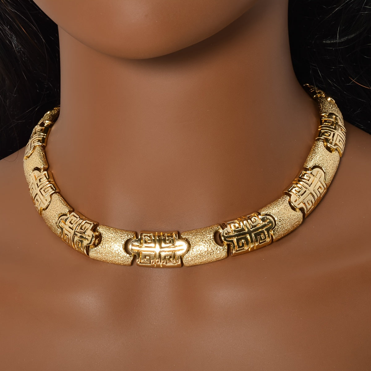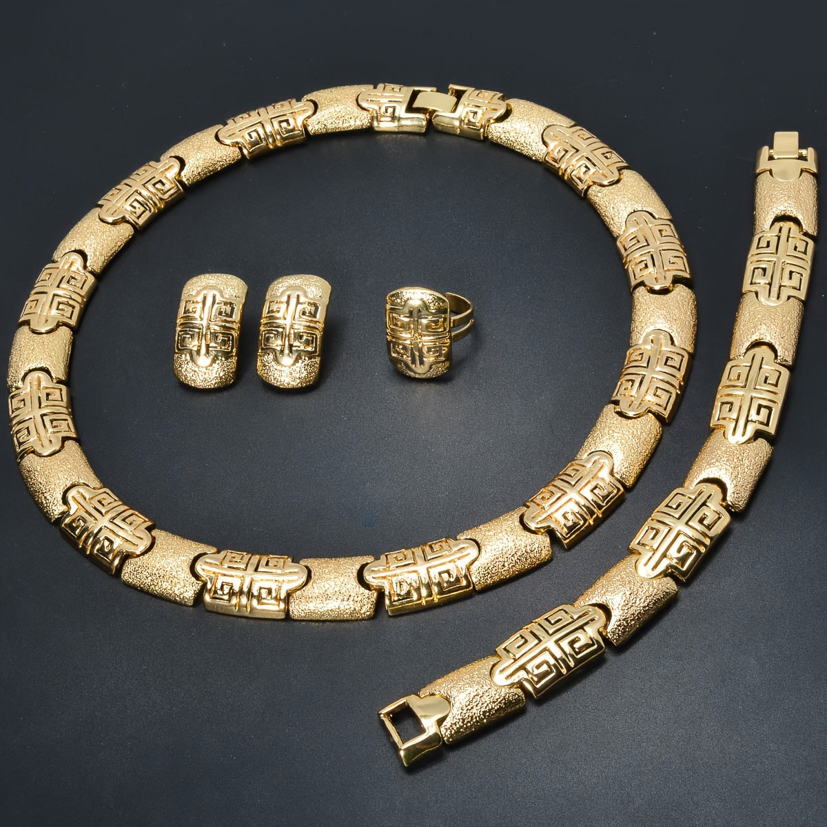 Women's Copper Jewelry Set with Necklace Bracelet Ring and Earrings Gold Textured Frosted Design