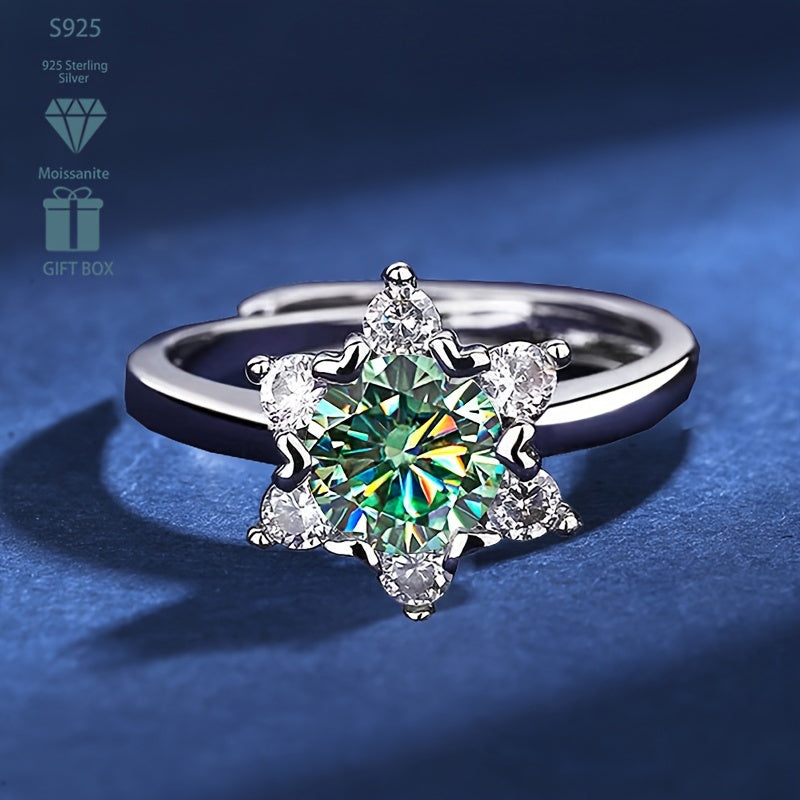 Bague de fiançailles en moissanite de 1 carat en argent avec 5 couleurs pour mariages et événements spéciaux