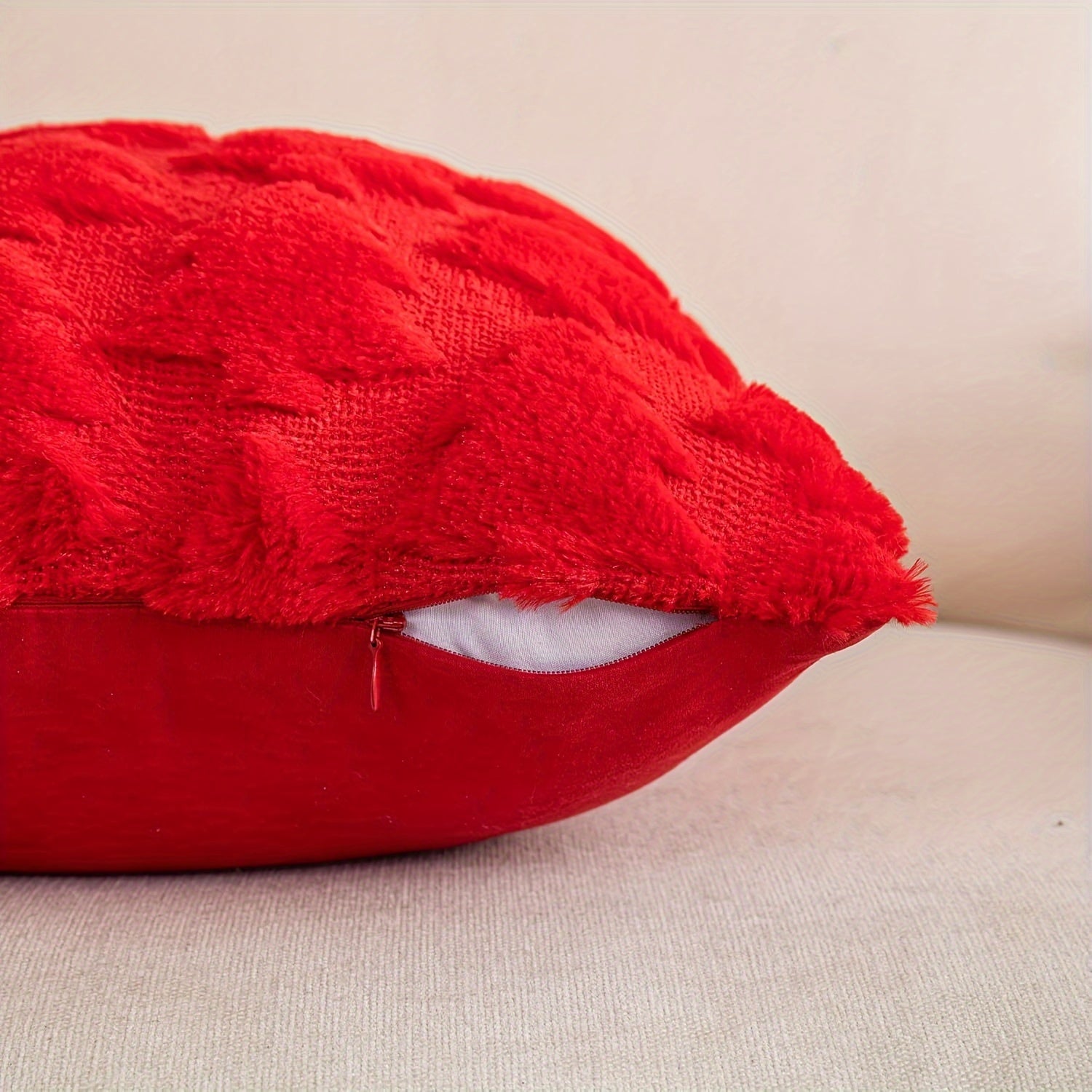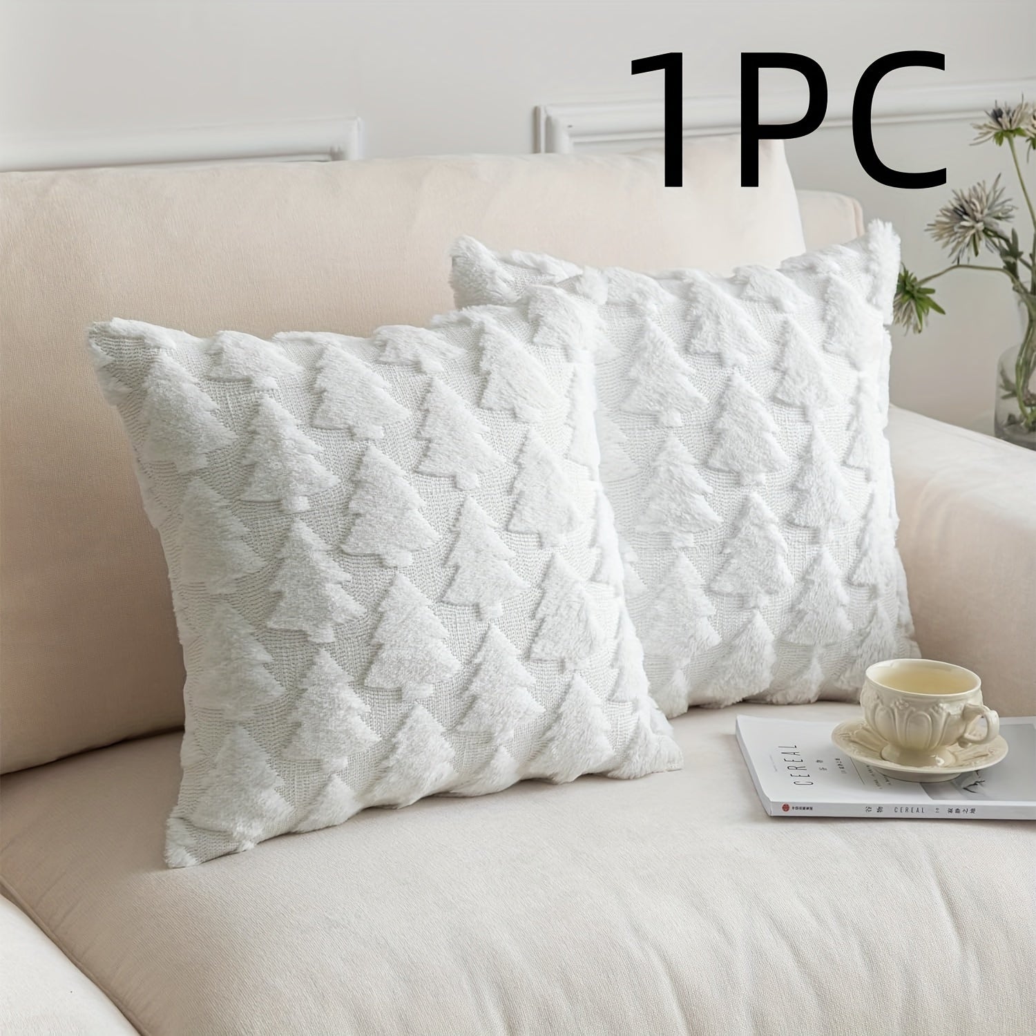 Christmas Tree Pillow Cover Faux Fur Jacquard 45.72cm Zippered Washable Home Decor