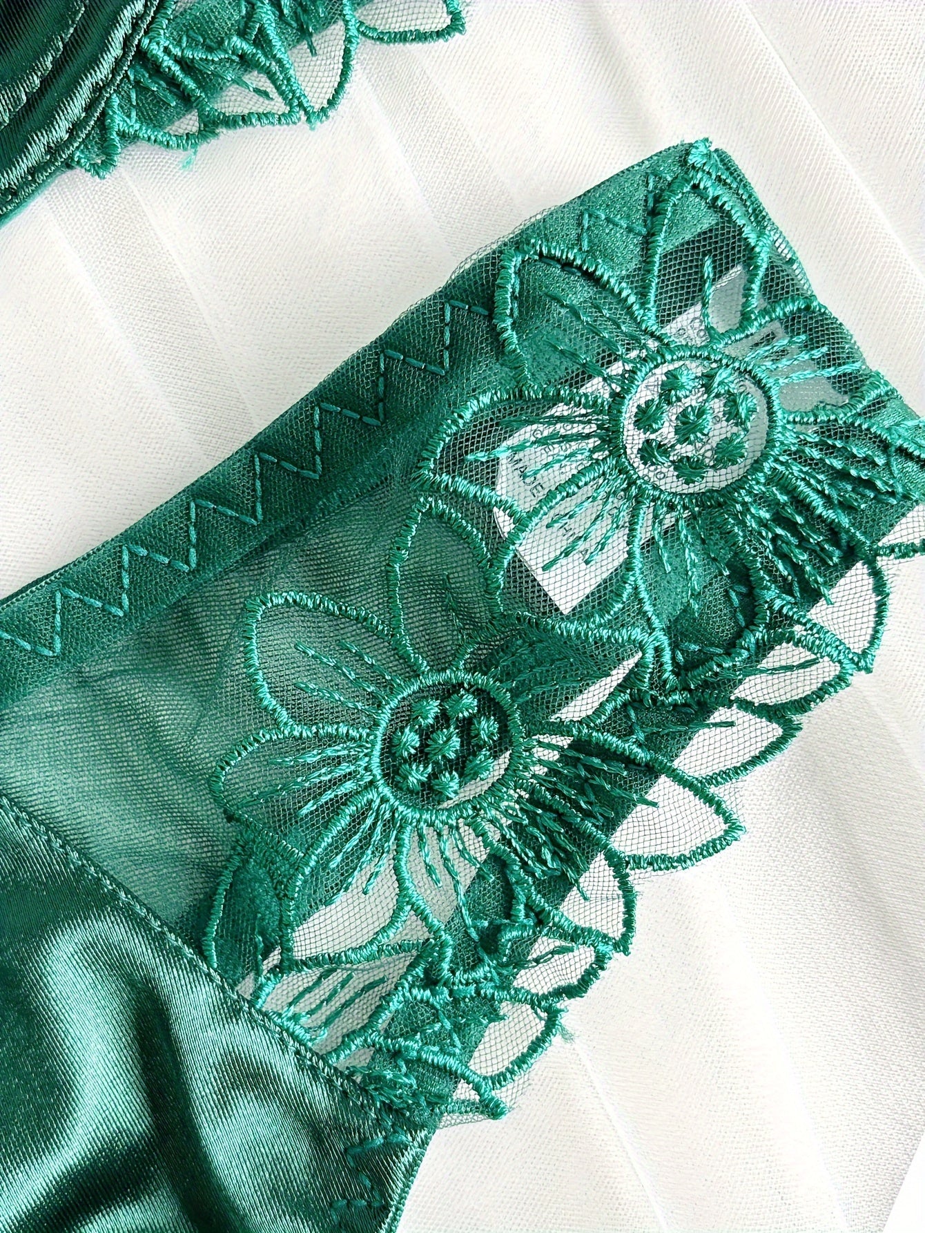 Women's Floral Embroidered Lingerie Set with Push-Up Bra and Thong