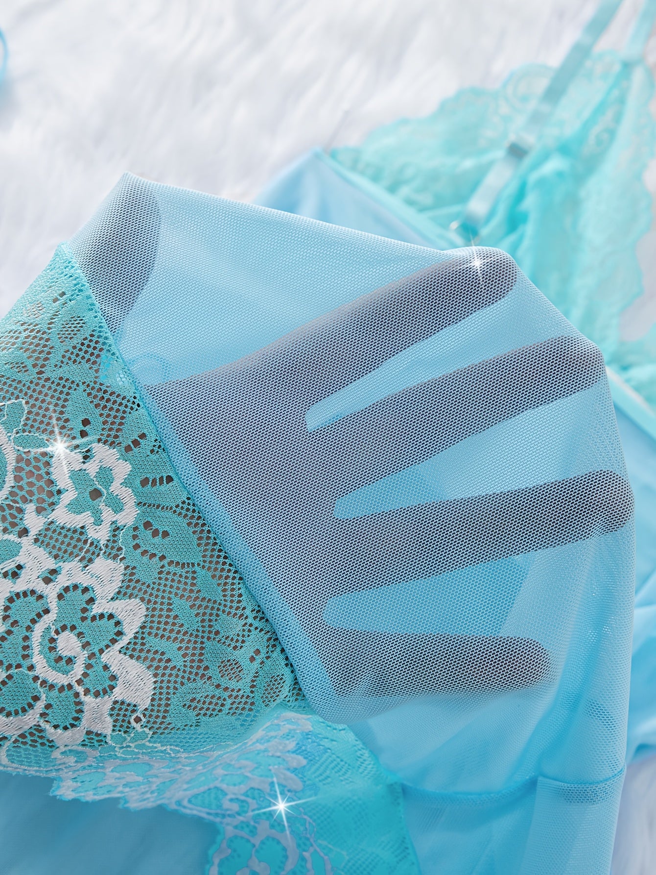 Women's Floral Lace Lingerie Set with V-Neck Nightgown Thong and Bow-Knot