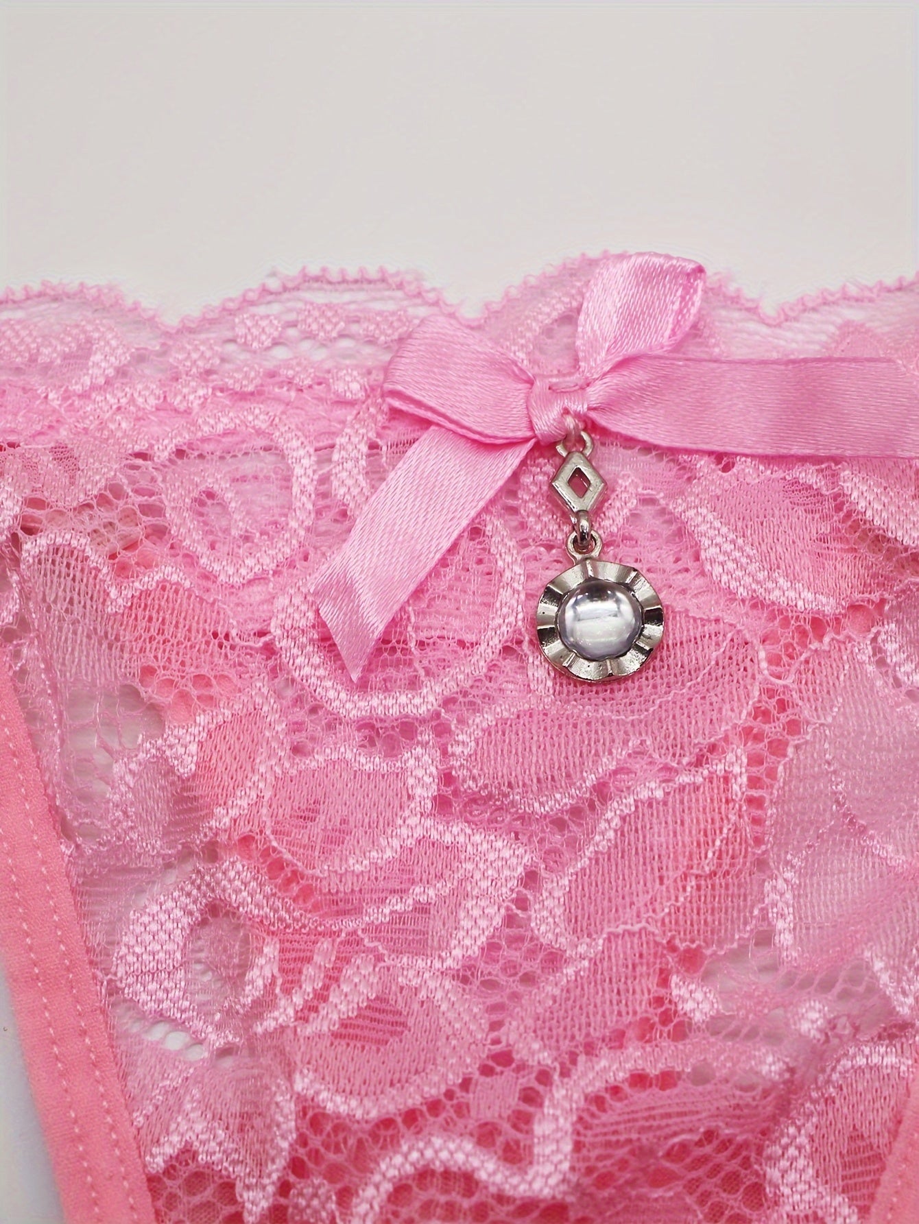 Women's Floral Lace Low Waist Thongs with Bow Tie Sexy Lingerie