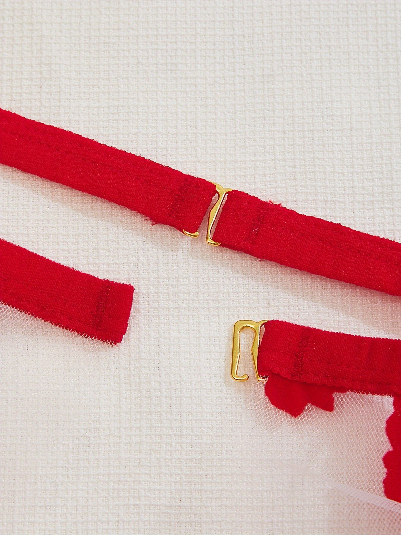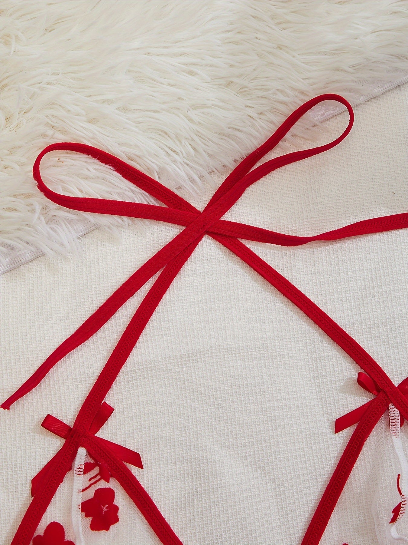 Women's Floral Mesh Lingerie Set with Deep V Slip Dress and Thong