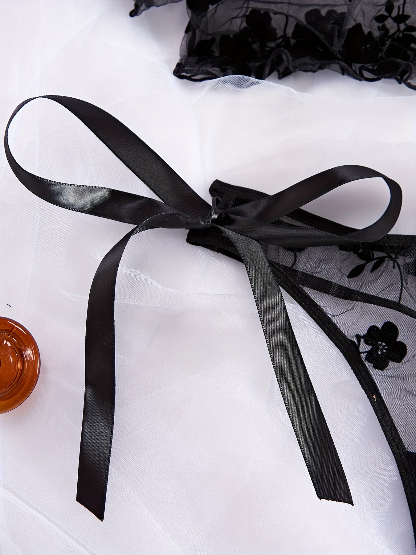 Women's Floral Mesh Lingerie Set with Off-Shoulder Top and Tie Side Thong