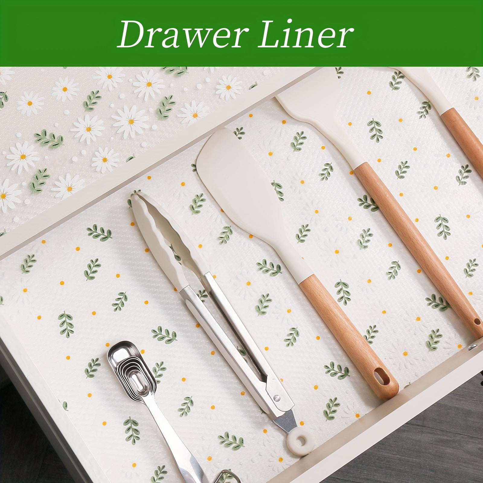 Floral Pattern Vinyl Shelf Liner Waterproof Non-Slip Cuttable EVA for Kitchen Cabinets Drawers