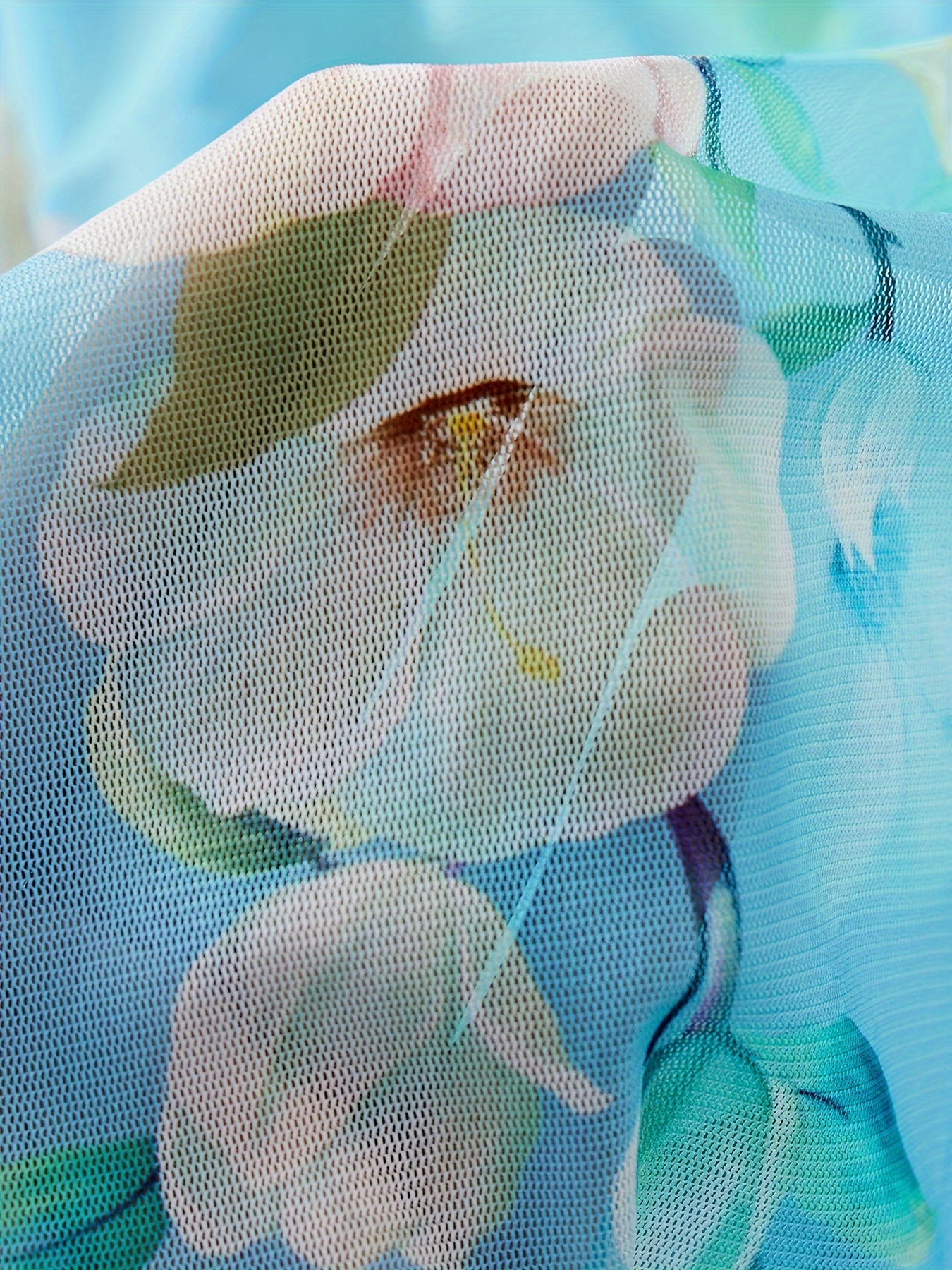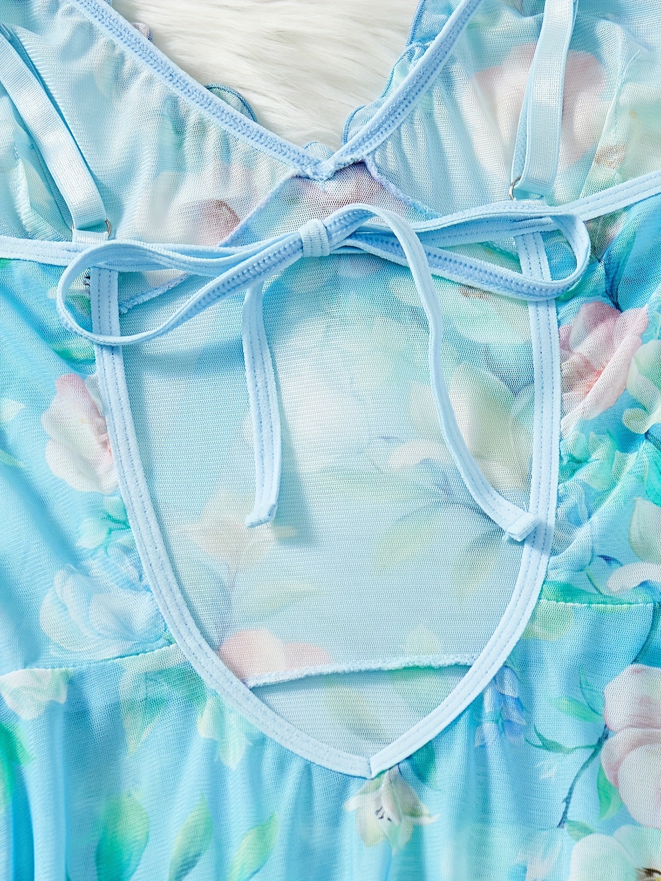 Women's Floral Print Sleepwear Set with Ruffle Hem and Adjustable Straps Includes Nightdress and Thong