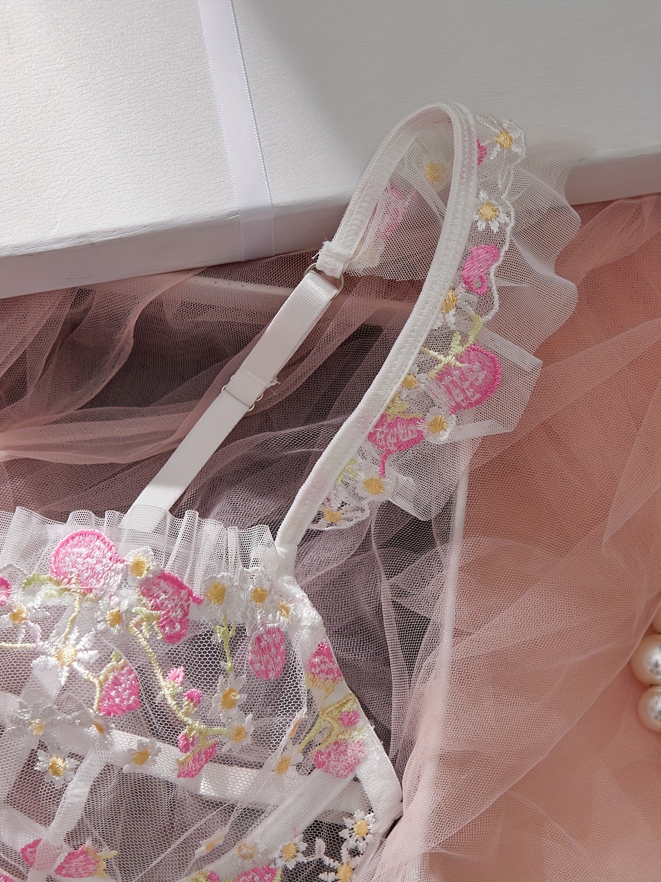 Women's Flower Design Lingerie Set with Bra and Thong for Sexy Underwear