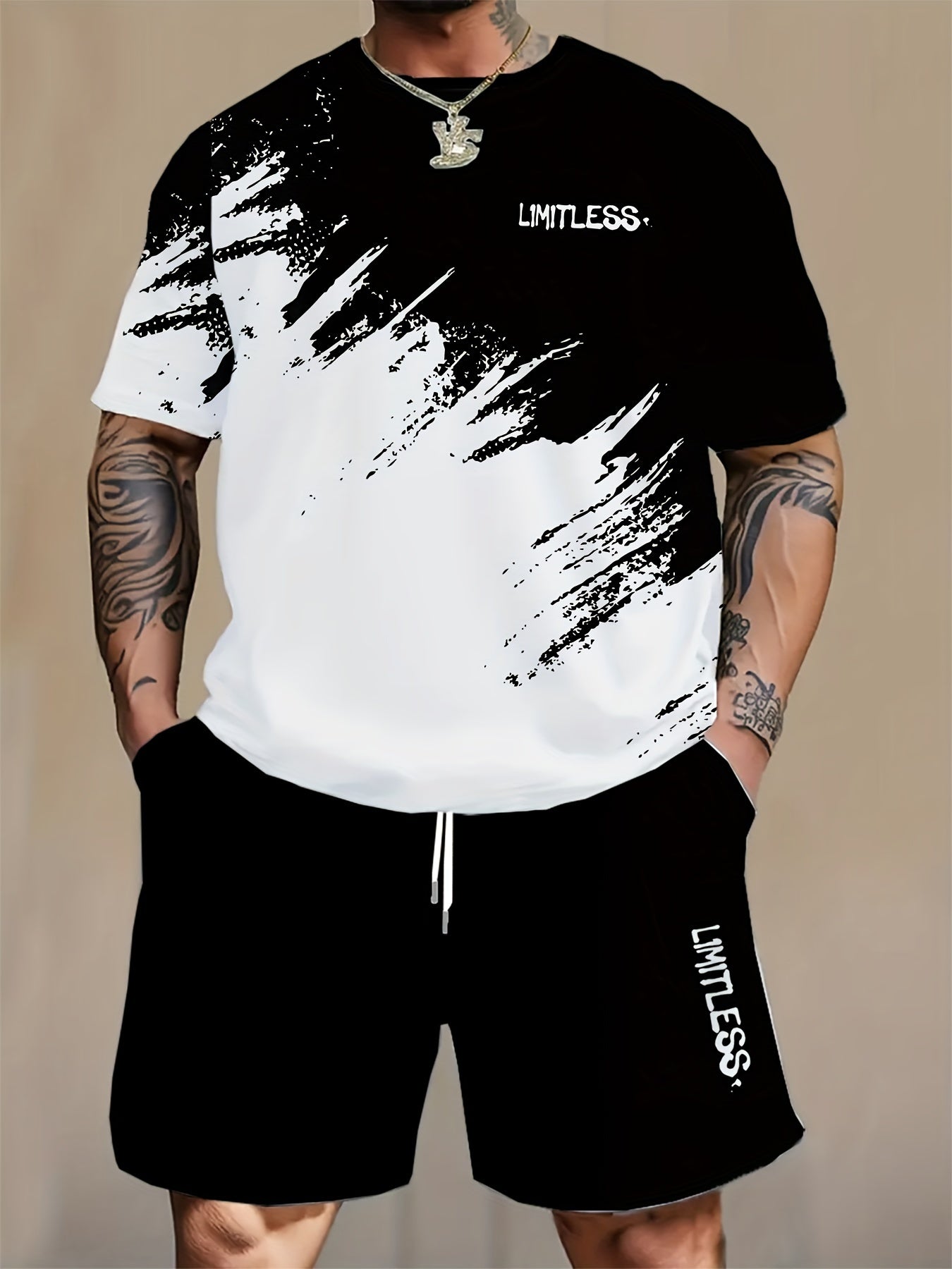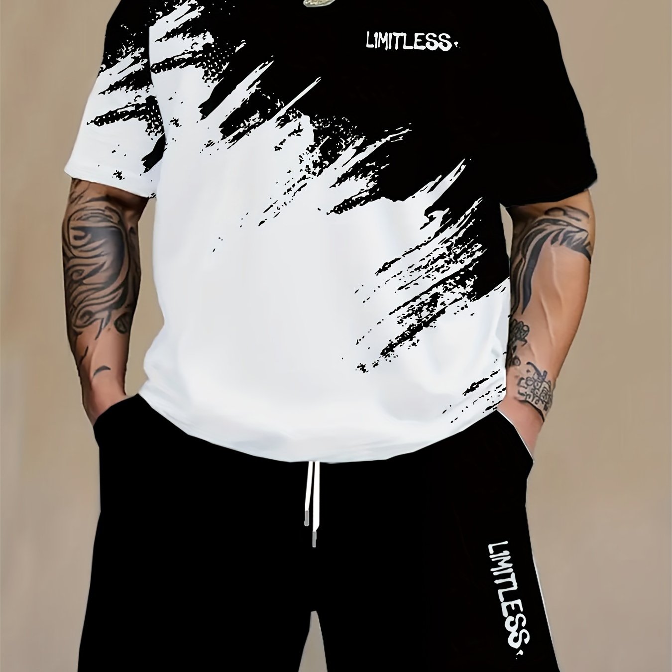 Plus Size Men's Geometric Pattern Sweatsuit Set Polyester Knit Casual Lounge Wear