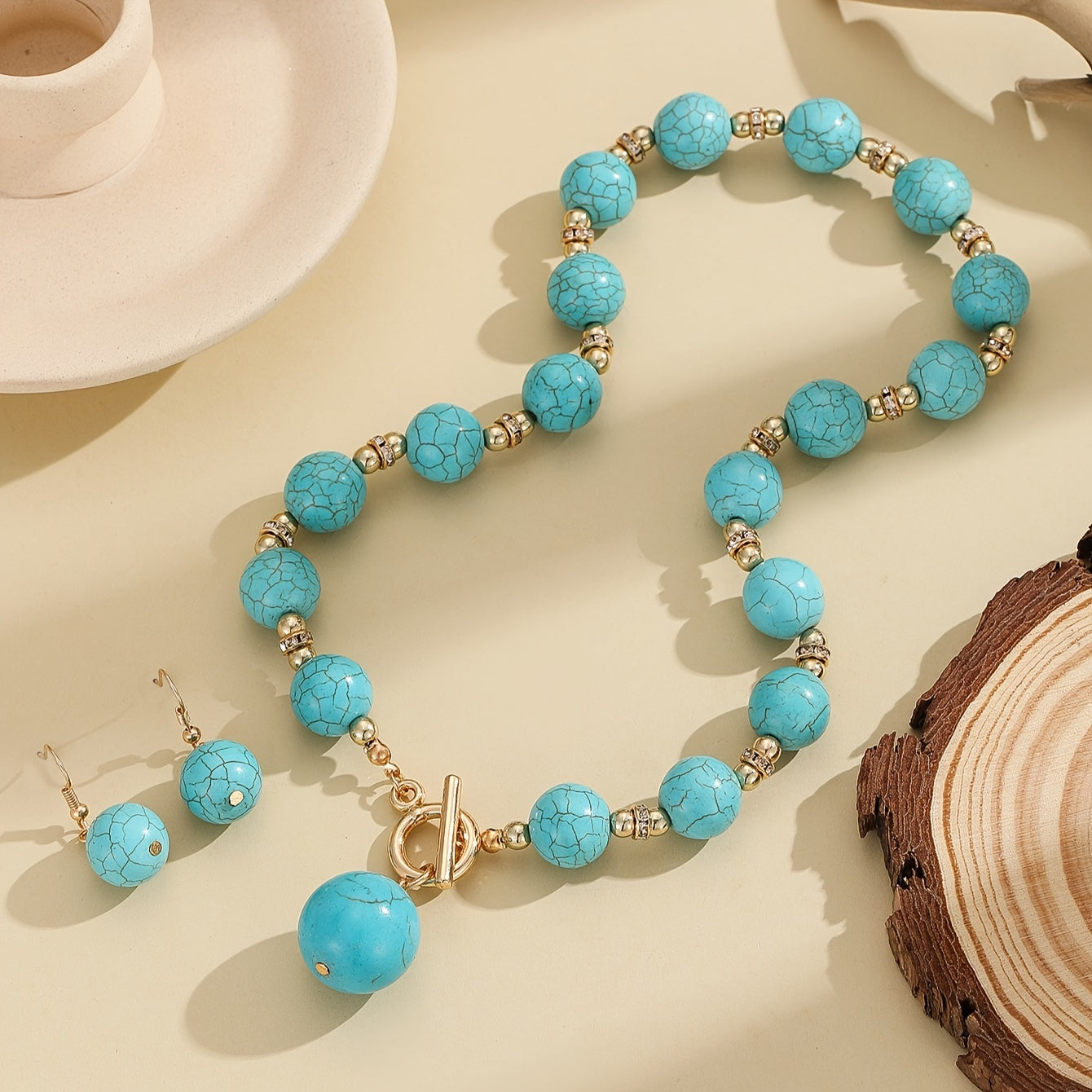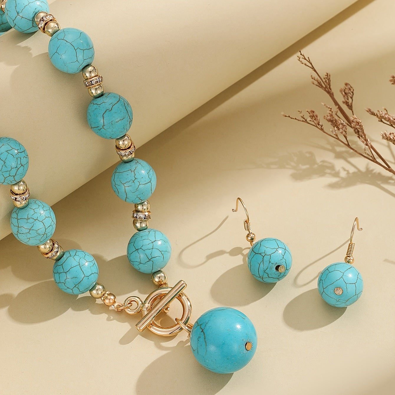 Bohemian Turquoise Beaded Gold Plated Jewelry Set Necklace Earrings for Wedding Engagement Festival