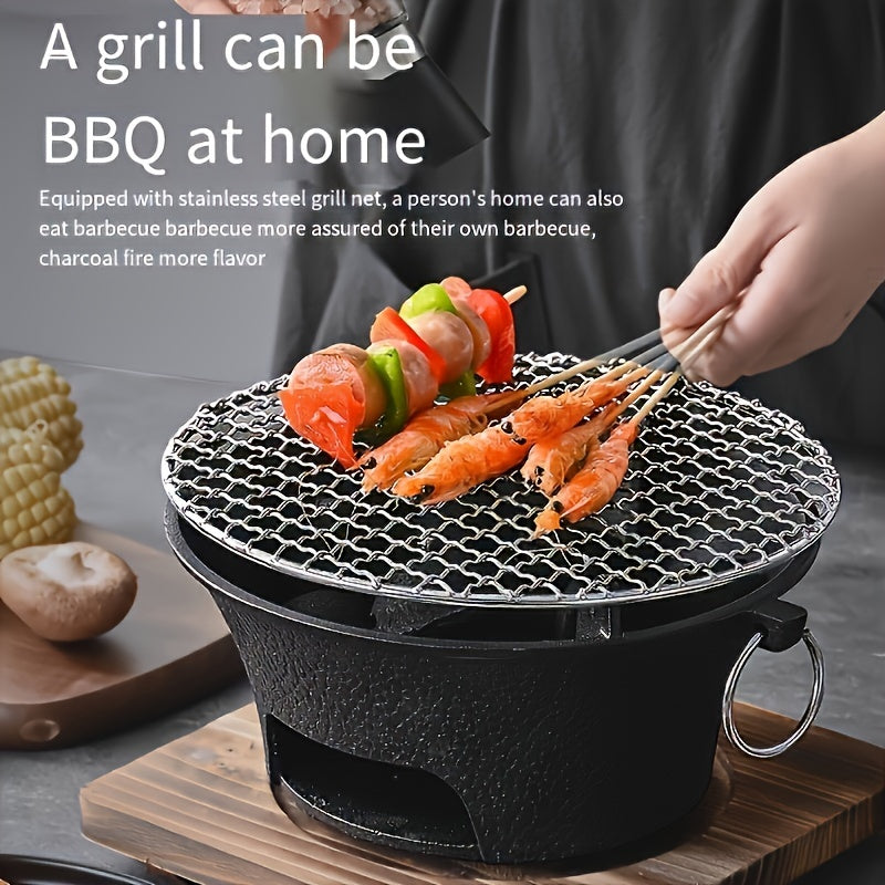 Cast Iron Charcoal Grill Stove with Mesh Net and Au Gratin Pan for Indoor Outdoor Cooking