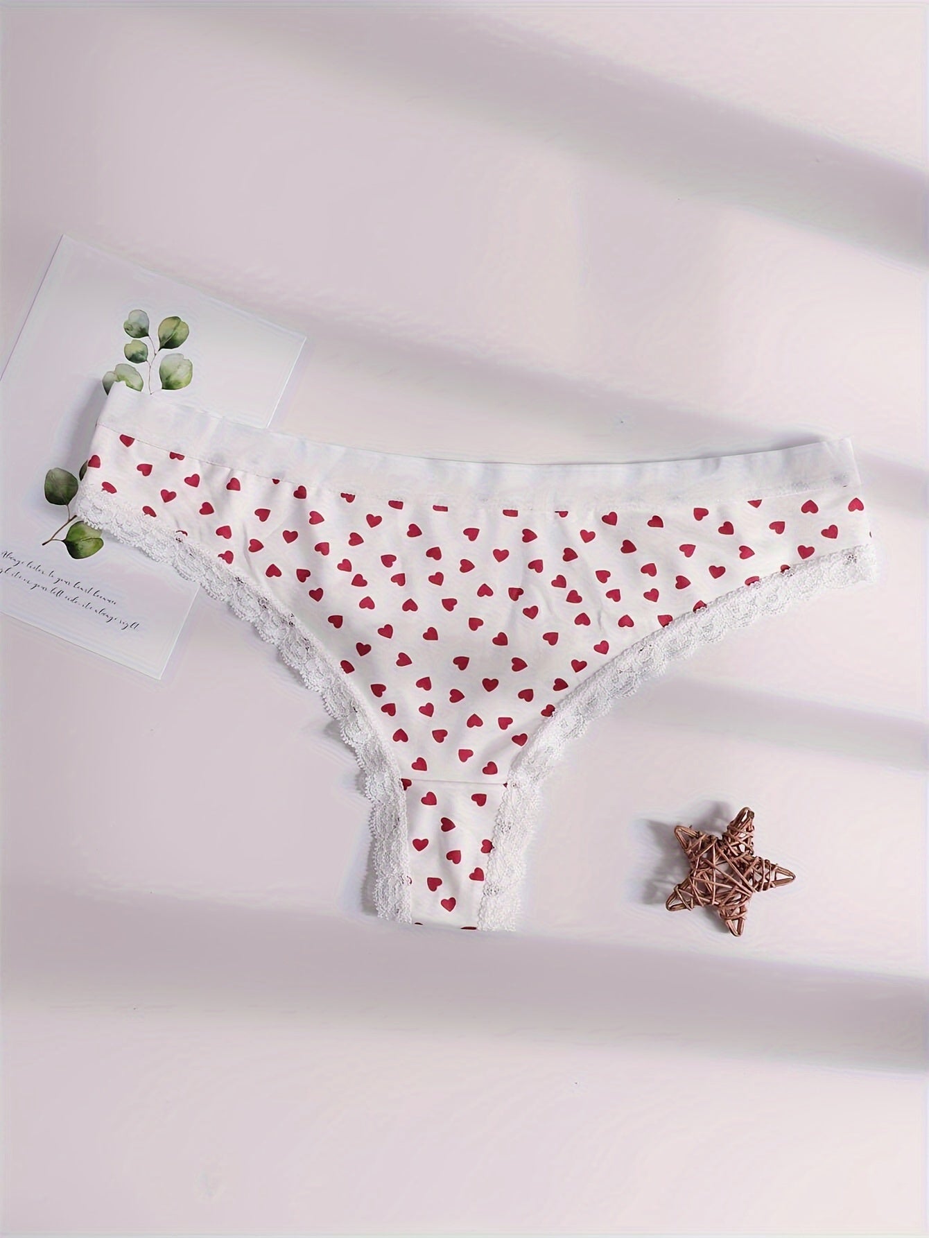 Women's Heart Print Lace Thongs Low Waist Sexy Underwear