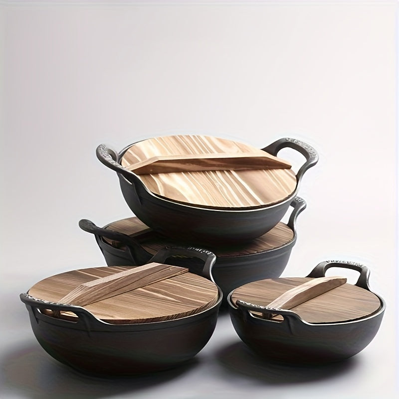 Cast Iron Skillet Durable Uncoated Pot for Stews Soups Induction Cooktop
