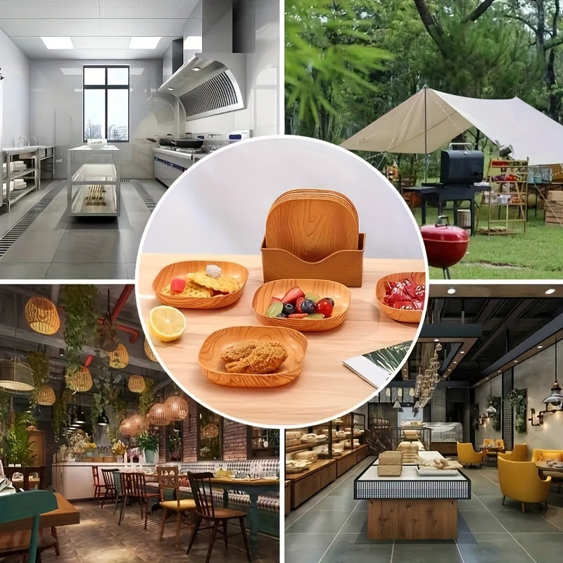 6-Piece Plastic Snack Dessert Fruit Bowls Set with Wood Grain Design Kitchen Serving Dishes