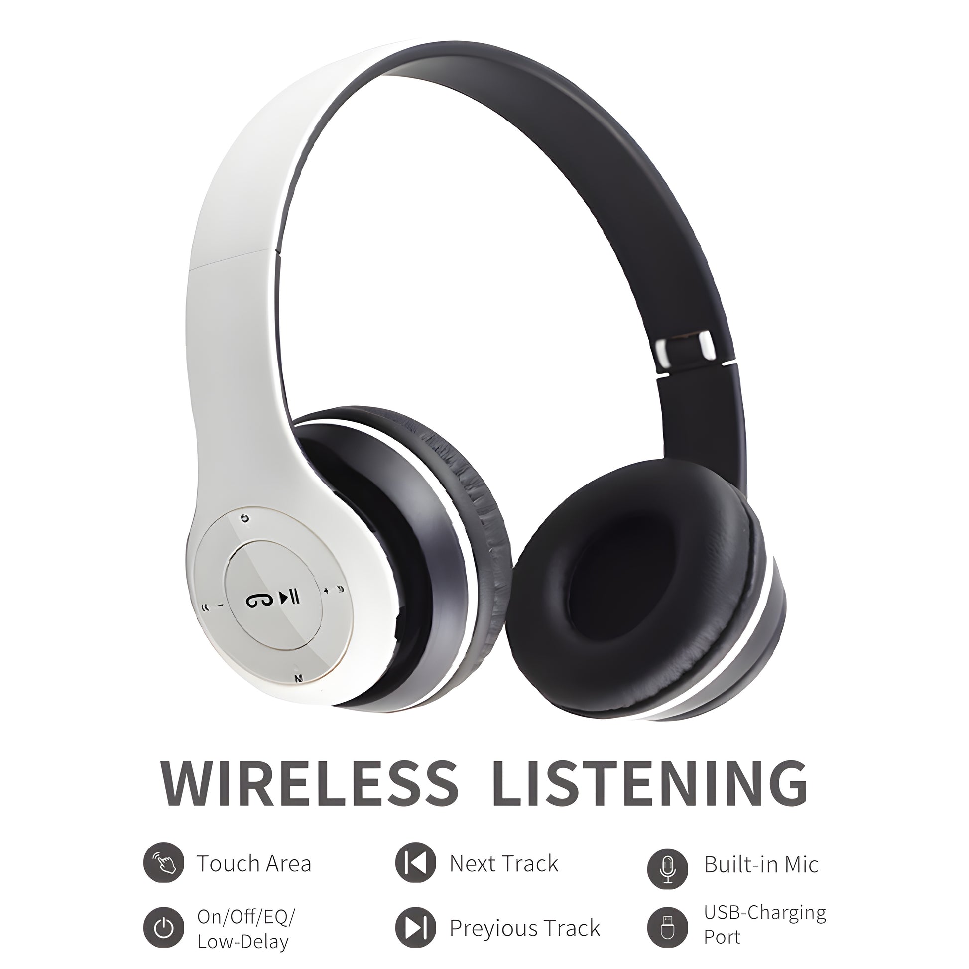 Foldable Wireless Headphones with Noise Cancelling Microphone, TF Card Slot, 3.5mm Jack for Gaming PC Phone Laptop in Black Red Blue Green
