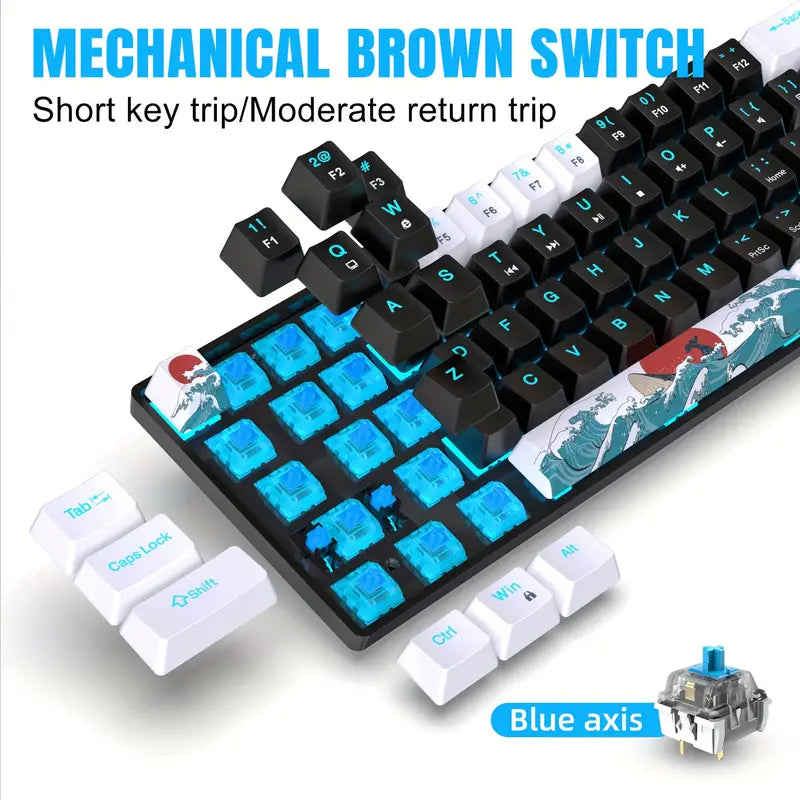 Mechanical Gaming Keyboard 68 Keys Blue Switch Backlit USB-C Windows Mac Laptop