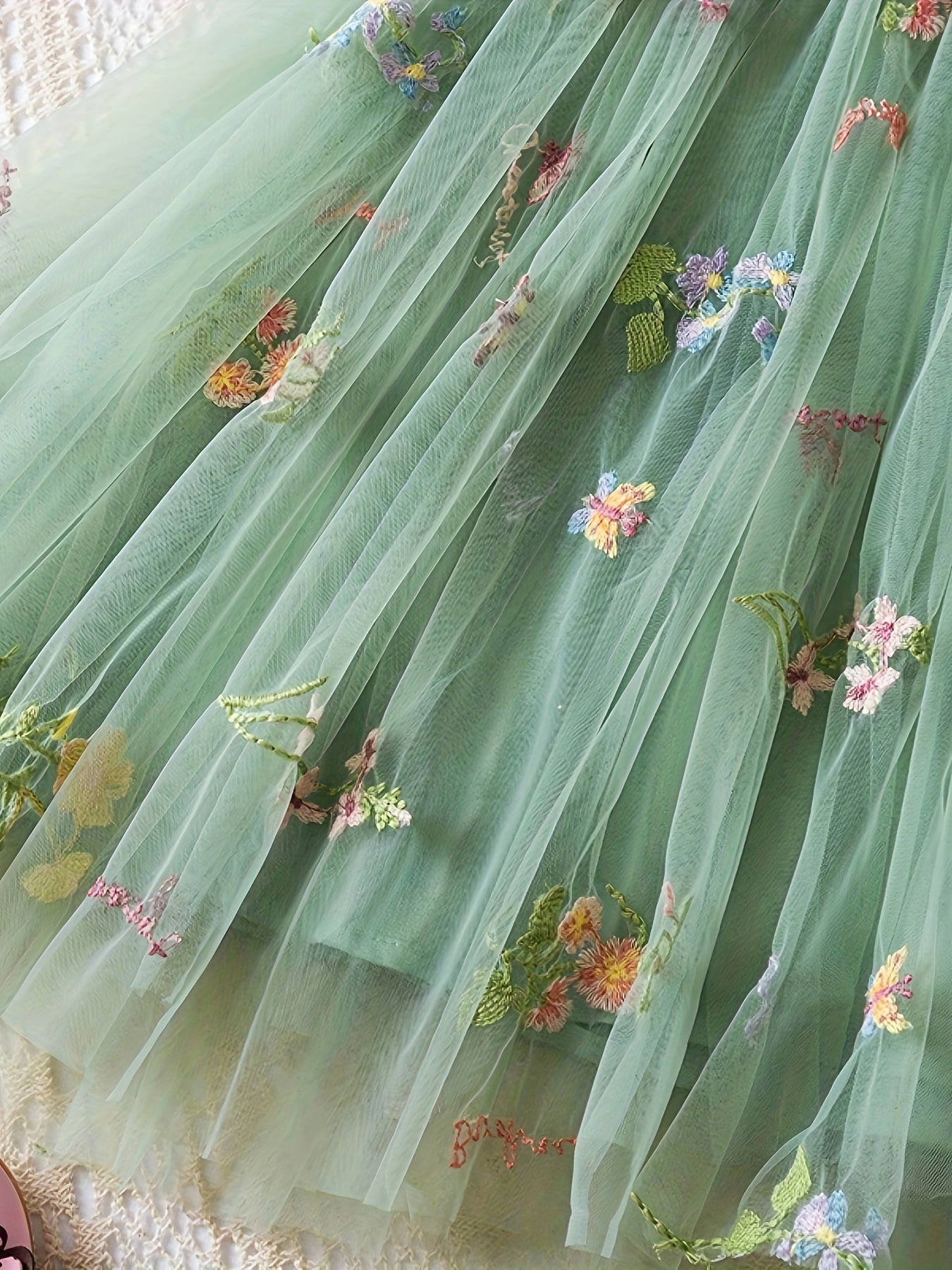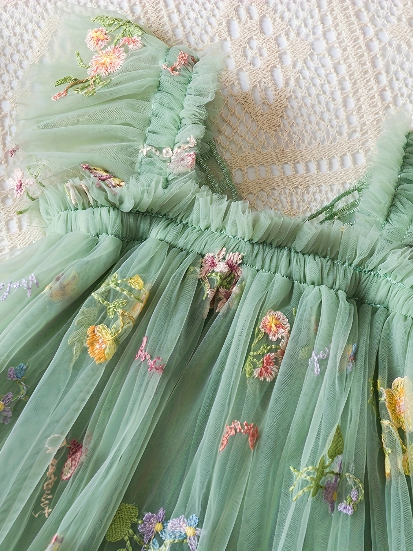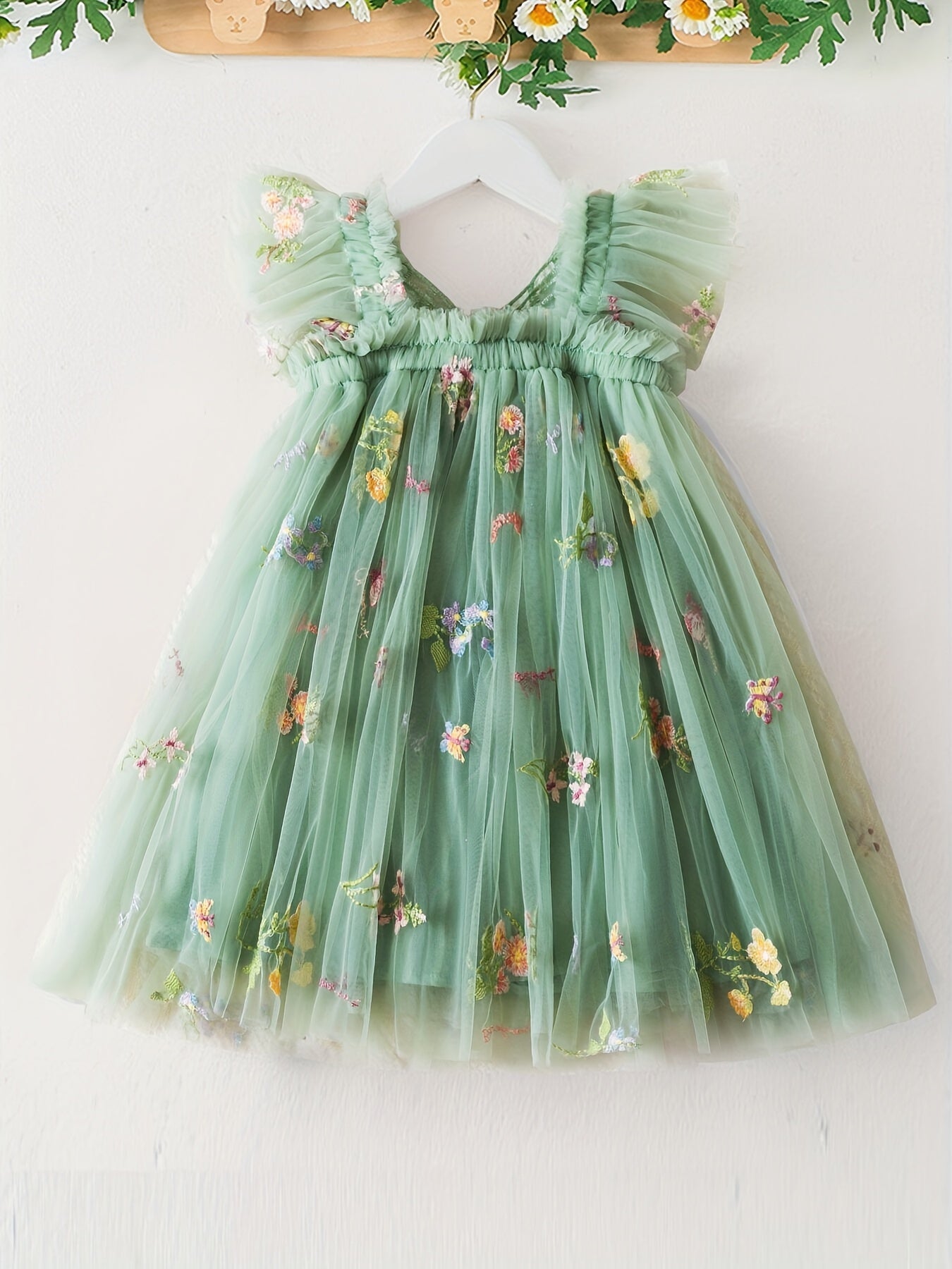 Infant Toddler Girl Summer Mesh Dress Butterfly Embroidery Cap Sleeve Baby Dress