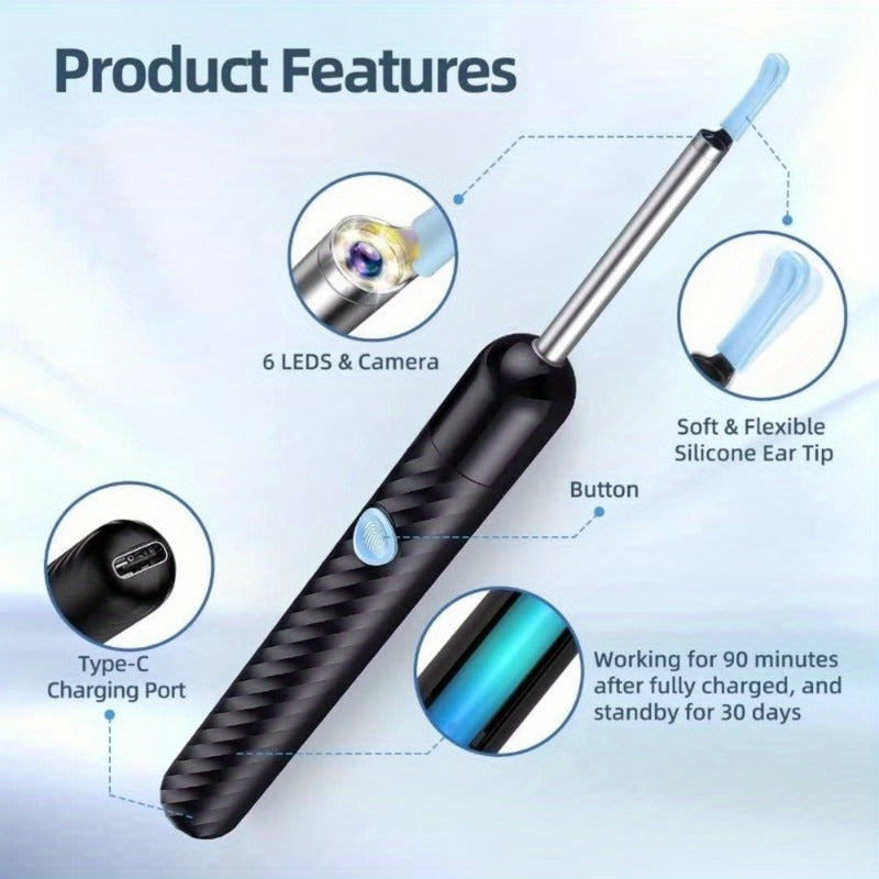 Intelligent 6-axis gyroscope stabilizes images for smooth transmission, captures HD pictures and videos in real time, helps you clean the ear canal accurately.3 Arc Ear Pick (2 each)