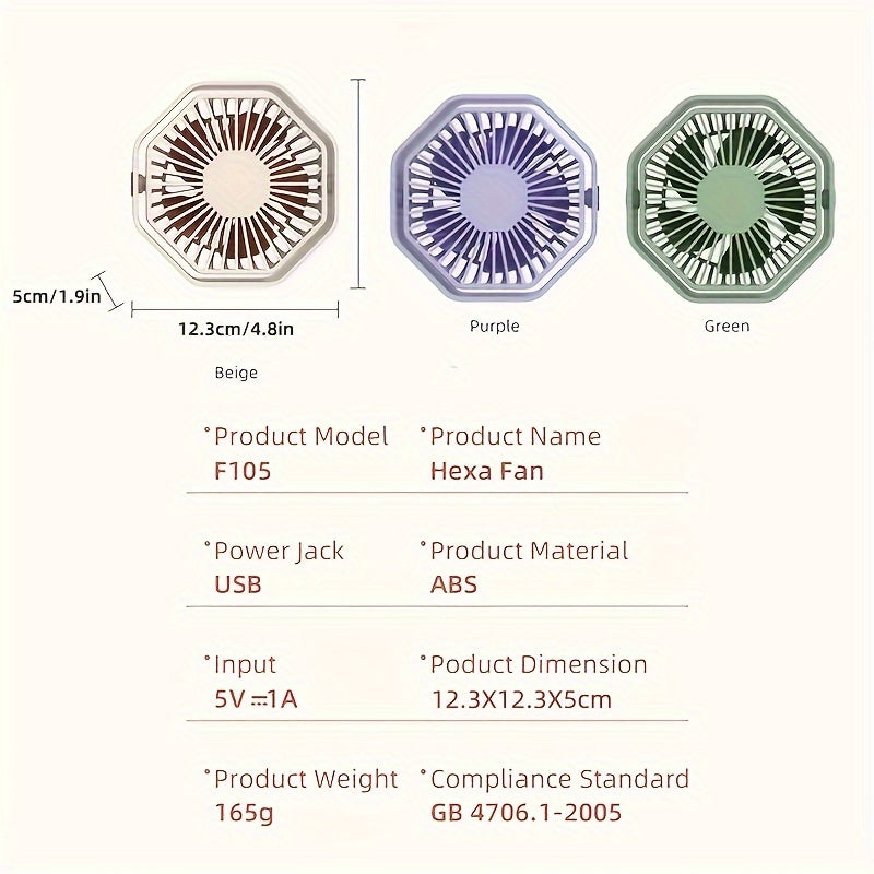 2024 USB Hexagonal Fan Portable Desktop Fan with Adjustable Speed and Manual Rotation