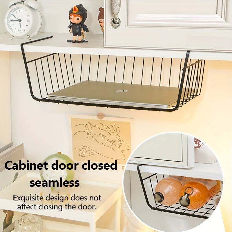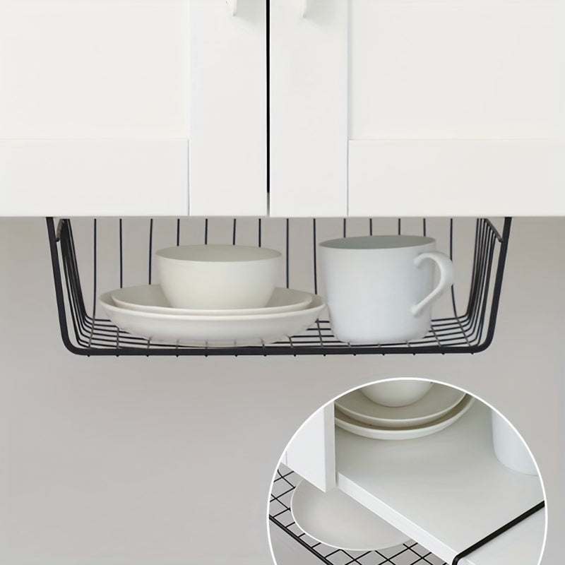 Black Cast Iron Kitchen Organizer with Under Shelf Storage and Hanging Basket