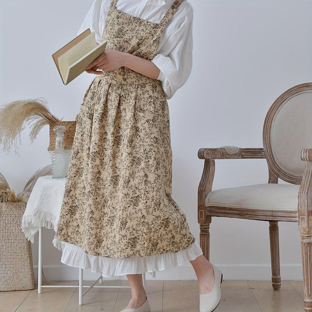 Korean Print Apron 100% Cotton Adjustable Waistband Kitchen Cooking Apron