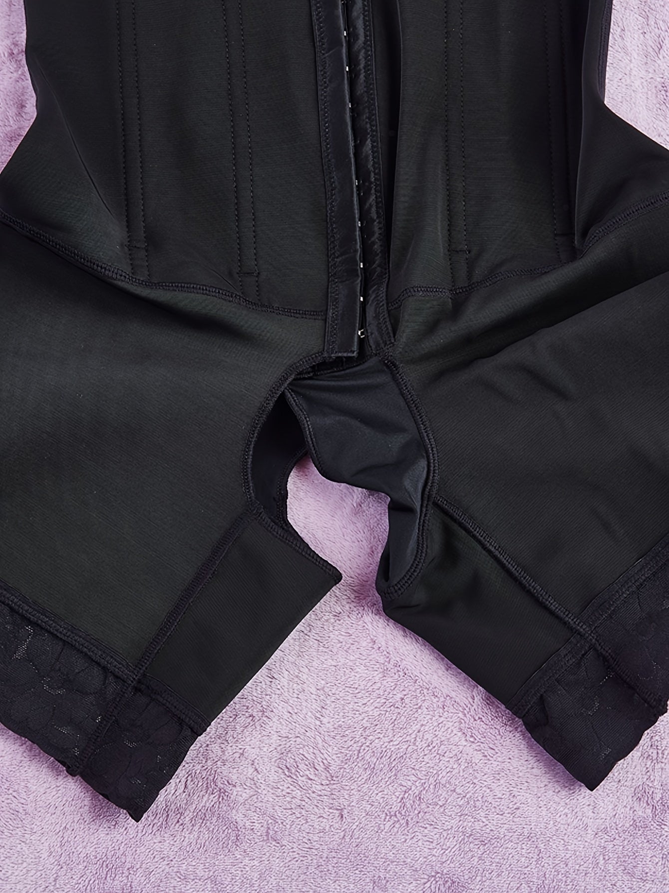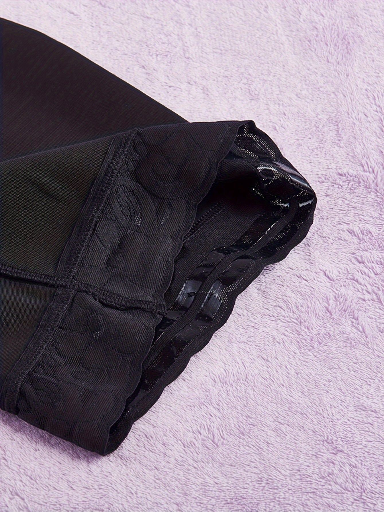 Lace Trim Bodysuit for Women Tummy Control Shaping Seamless Solid Color