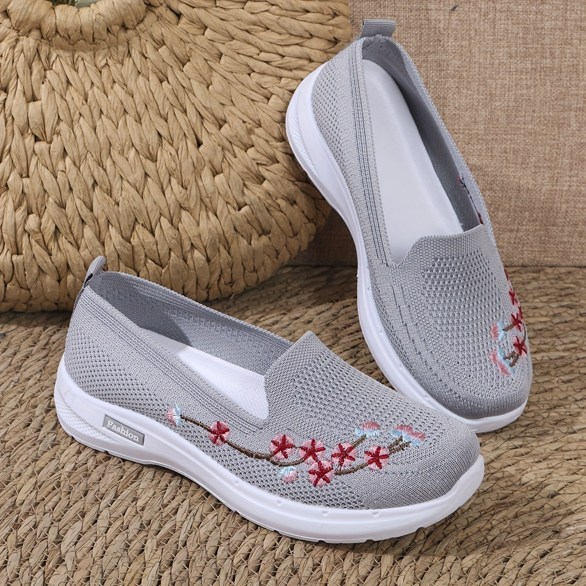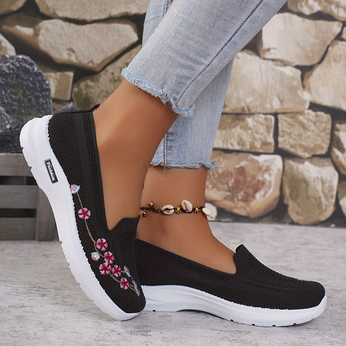 Ladies' Knitted Fabric Running Shoes with Embroidered Double-Layered Soles