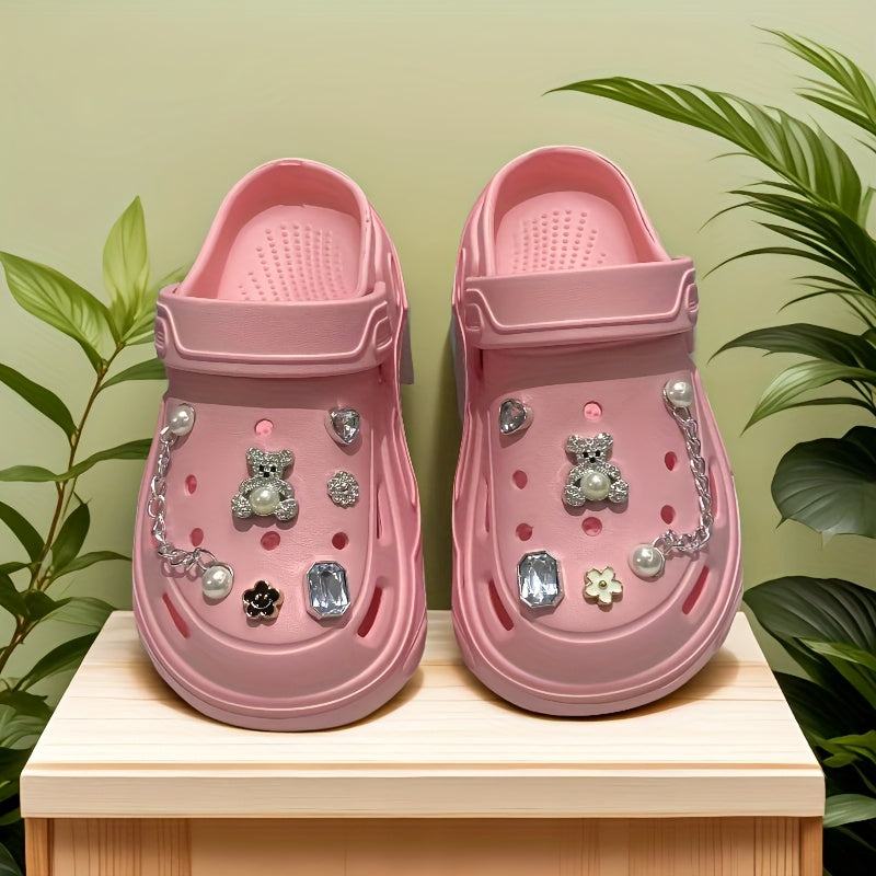 Ladies Summer Fashion Hole Shoes with Decorative Illustrations and Interchangeable Accessories