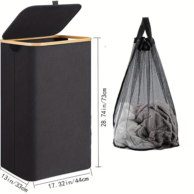 Large 110L Foldable Laundry Basket with Lid Handle and Inner Bag