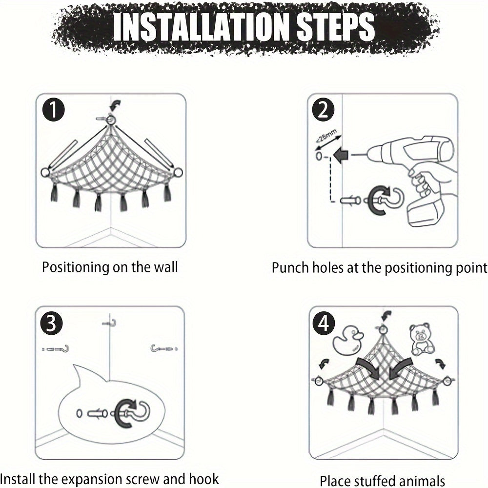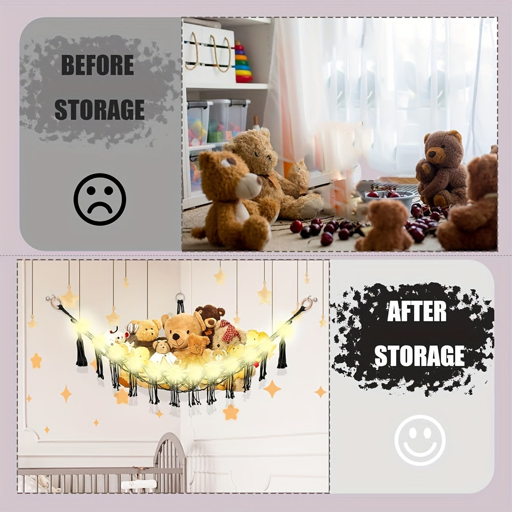 Large Capacity Black Bohemian Style Animal Hammock Hanging Net for Storage in Living Room Bedroom