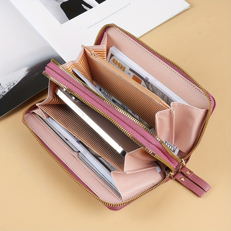 Large Capacity Faux Leather Zipper Wallet for Women with Card Slots and Zip Pocket