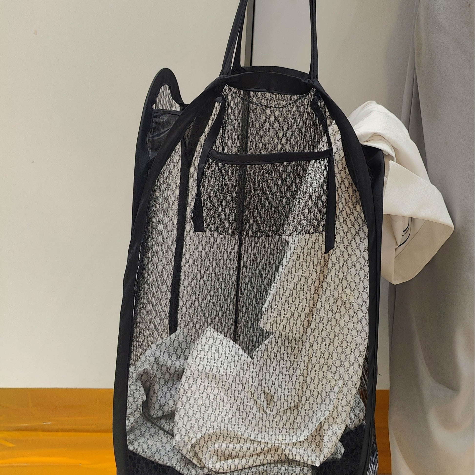 Large Foldable Mesh Laundry Basket with Handles Spacious Round Organizer for Dirty Clothes
