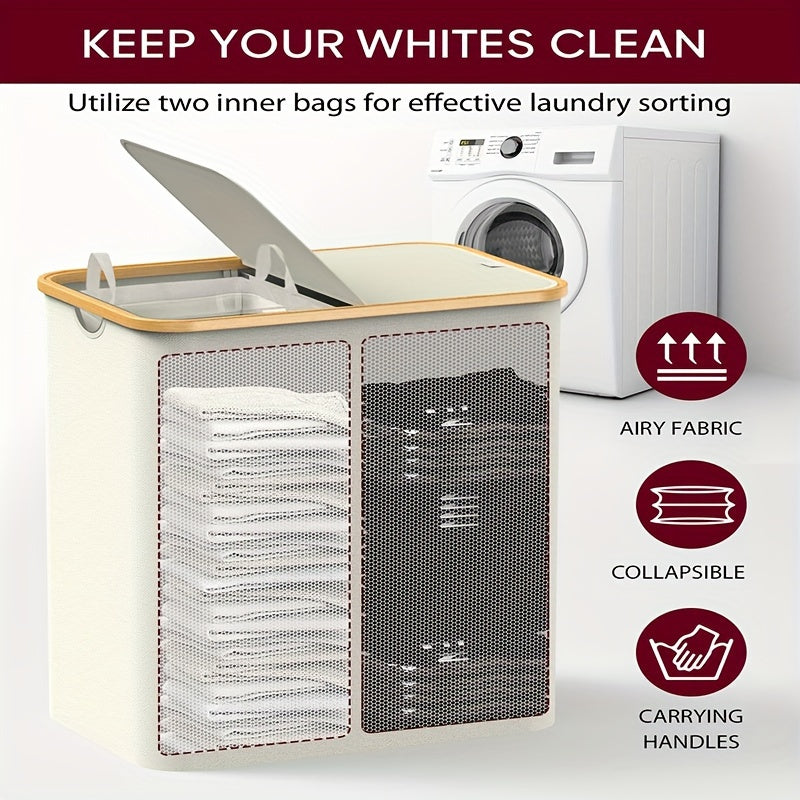 Large Laundry Hamper with Lid and Detachable Bags for Clothes Storage in Laundry Rooms and Dorms