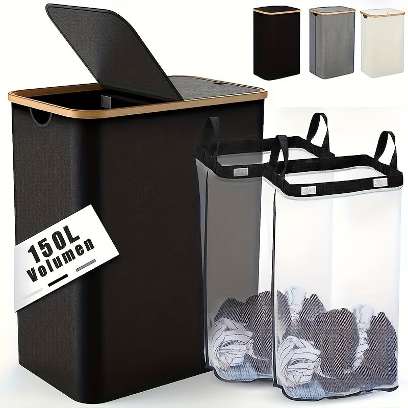 Large Laundry Hamper with Lid and Detachable Bags for Clothes Storage in Laundry Rooms and Dorms