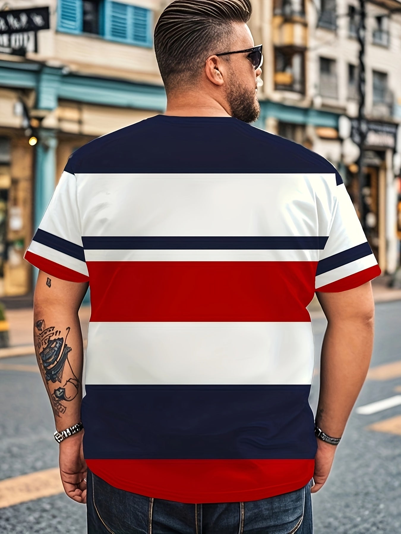 Men's Large Casual Sports T-Shirt Polyester Spandex Digital Stripe Print