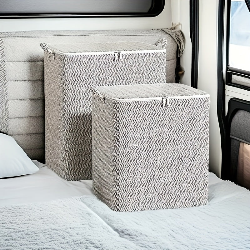 Large Storage Bag with Zipper Handles Non-Woven Material for Clothes Quilts Blankets in Bedroom Car Trunk