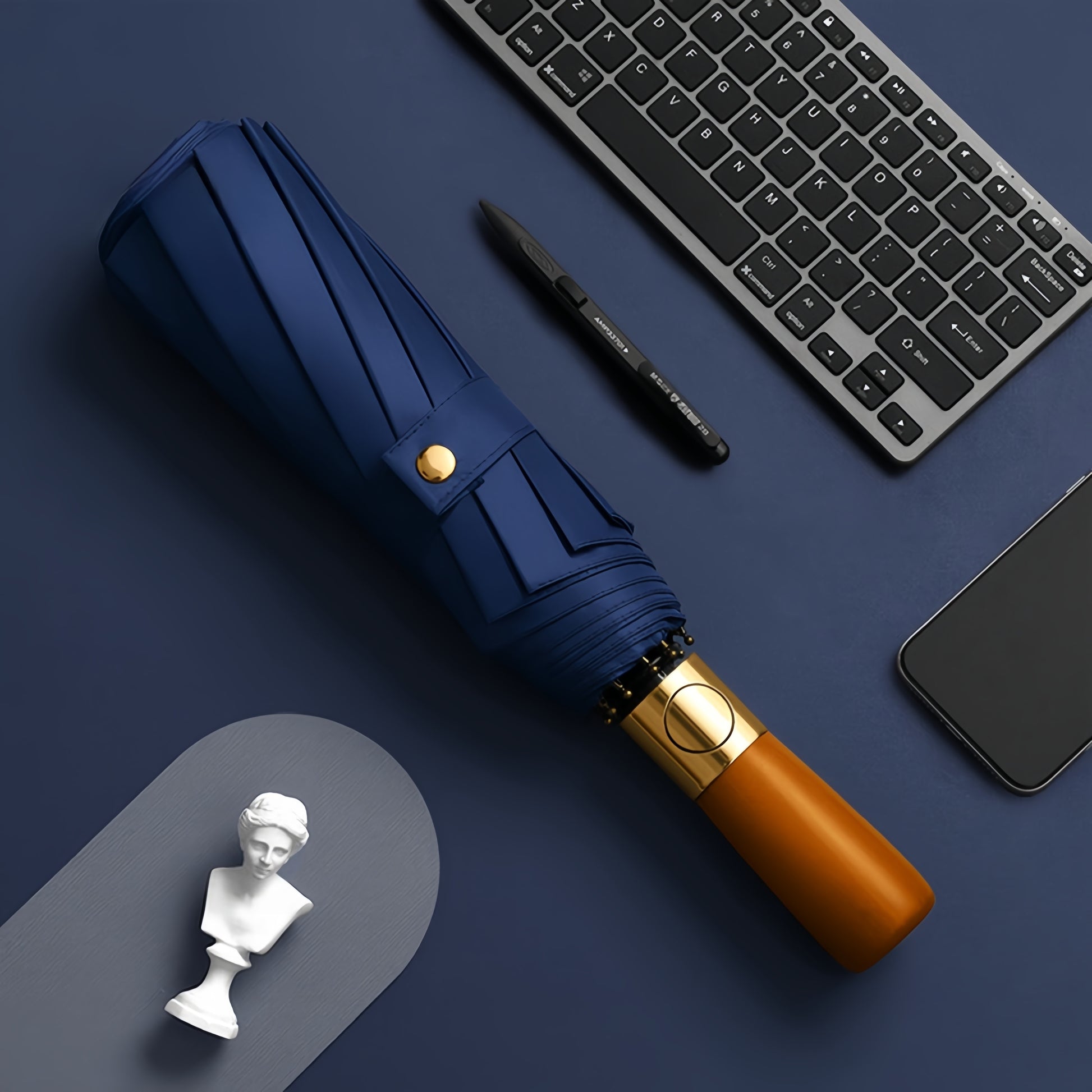 Large Wind-Resistant Business Umbrella with Wooden Handle and Automatic Open