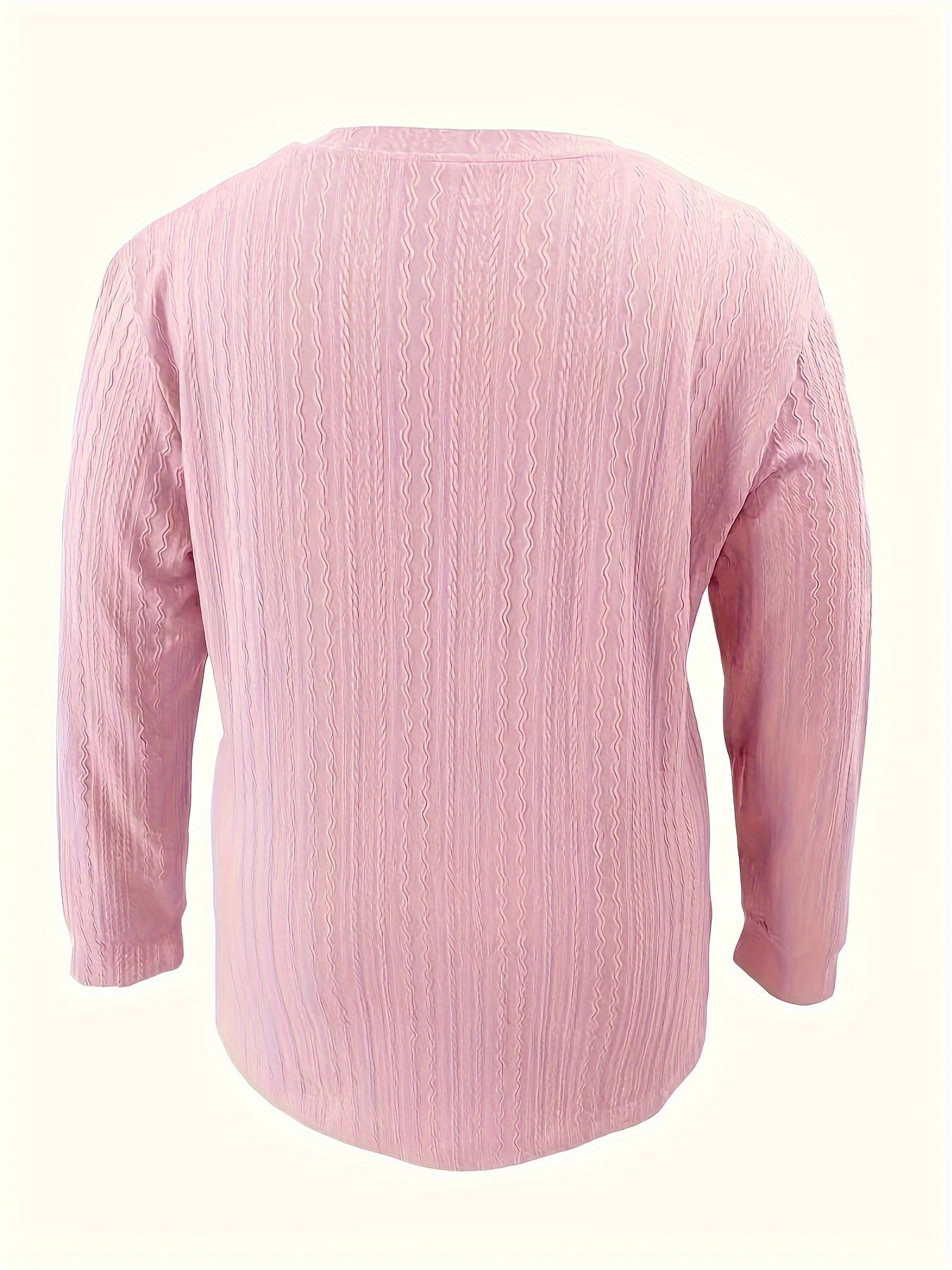 Pink Women's Long Sleeve V-Neck T-Shirt with Button Detail for Fall Winter